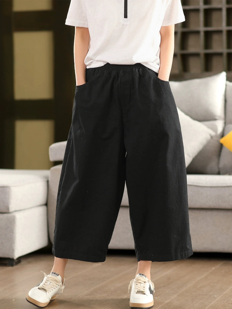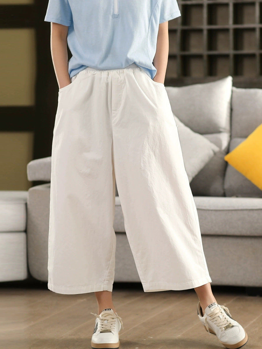 Plus SIze Women Summer Pure Color 100%Cotton Wide-leg Pants