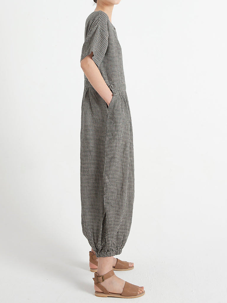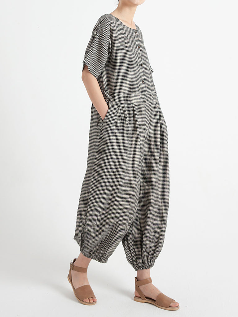 Plus Size Women Plaid Short Sleeve Summer Jumpsuit Overalls