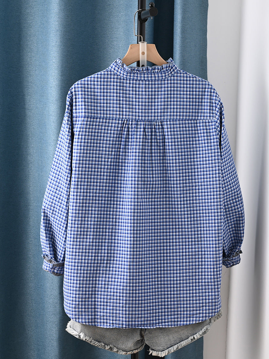 Women Artsy Plaid 100%Cotton Shirt