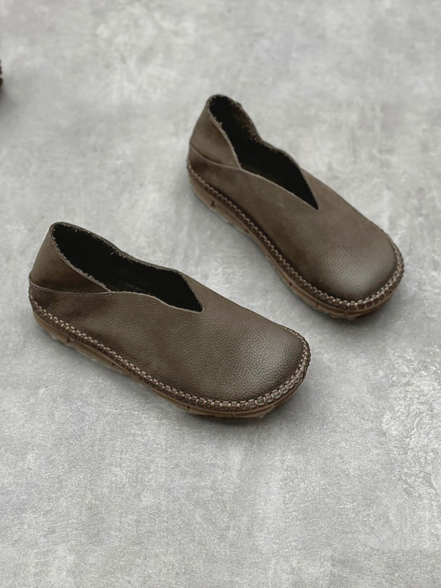 Women Summer Vintage Solid Leather Soft Flat Shoes