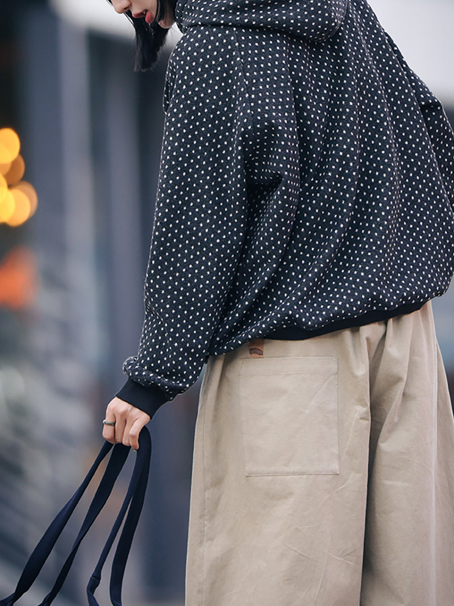 This vintage-inspired winter hoodie combines comfort with timeless style. Crafted from a thoughtfully blended fabric composition—86% polyester, 2% wool, 2% spandex, 2% nylon, and 8% rayon—it delivers warmth without excess weight. The classic dot pattern adds visual interest, while the hooded neckline and full-length raglan sleeves provide practical coverage. Its retro aesthetic makes it an ideal layering piece for autumn and winter seasons, effortlessly bridging casual and vintage-forward wardrobes.