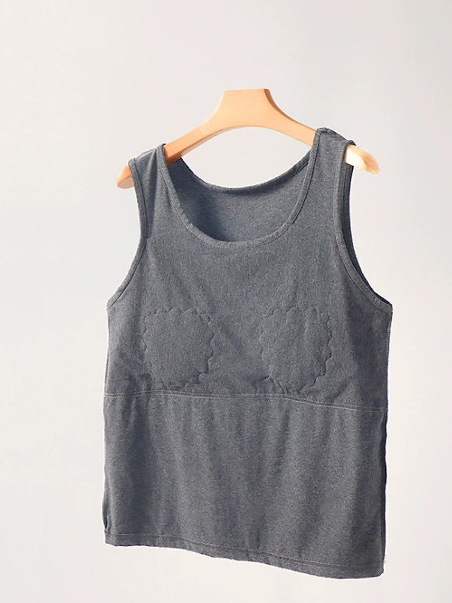 Women Pure Color With Bra Pads Indoor Base Vest