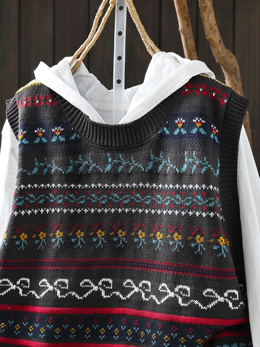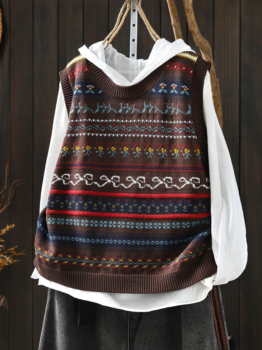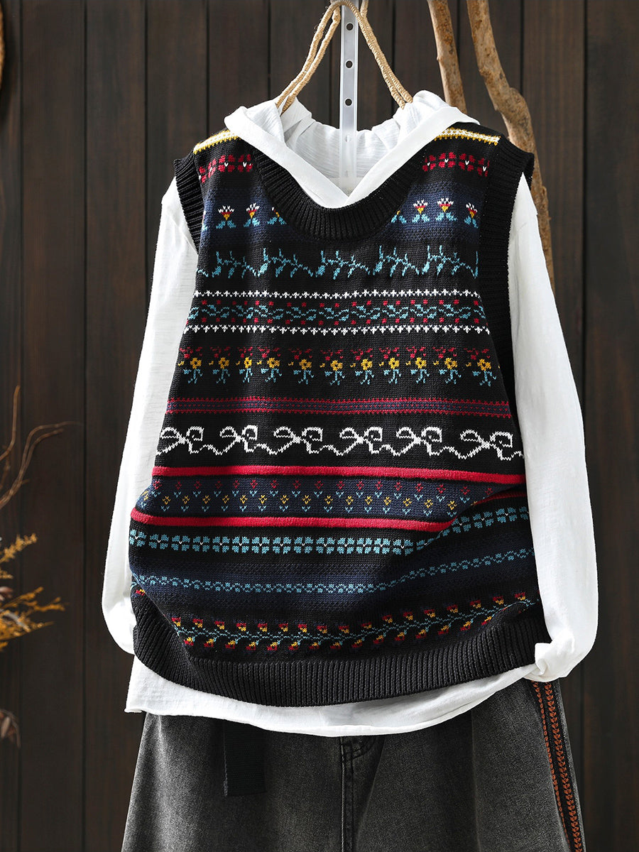 This knitted vest combines 55% cotton with 45% acrylic for optimal temperature regulation across cooler months. The distinctive artsy wave hem elevates the understated o-neck design, offering a refined aesthetic that transitions seamlessly from spring into autumn. The fiber blend provides excellent durability and wearability, making it an essential layering staple for your seasonal wardrobe.