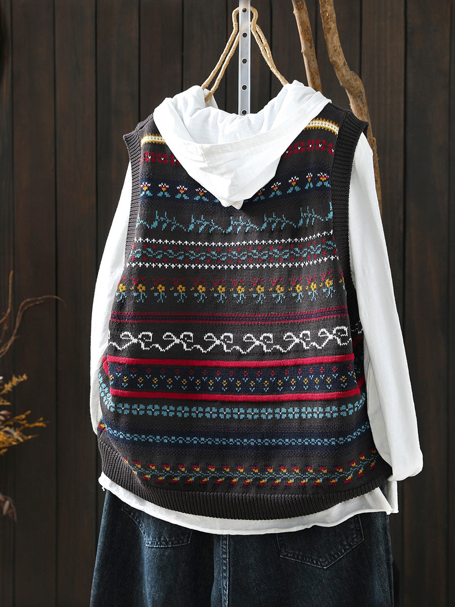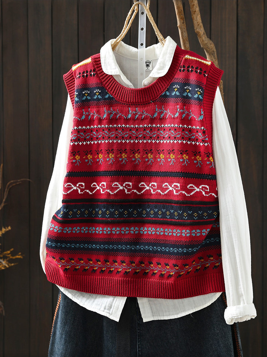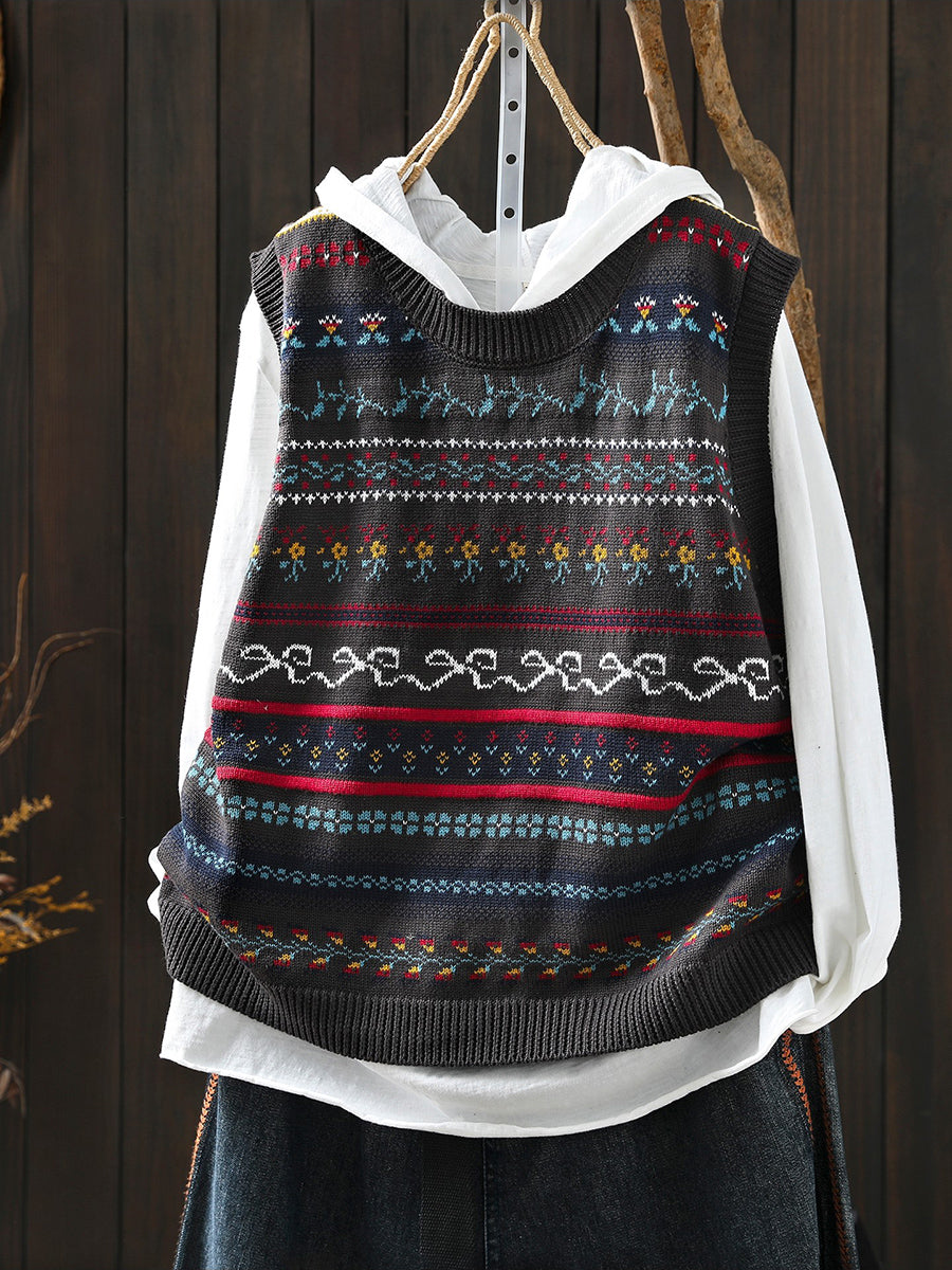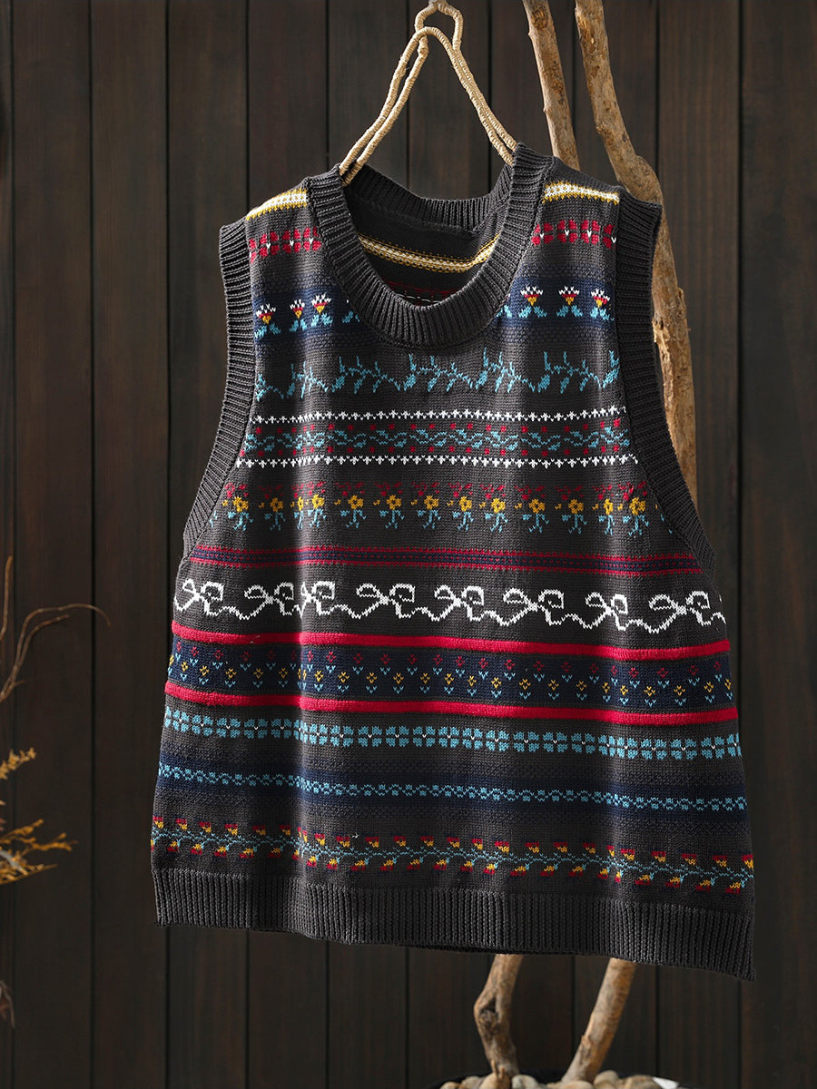 This knitted vest combines 55% cotton with 45% acrylic for optimal temperature regulation across cooler months. The distinctive artsy wave hem elevates the understated o-neck design, offering a refined aesthetic that transitions seamlessly from spring into autumn. The fiber blend provides excellent durability and wearability, making it an essential layering staple for your seasonal wardrobe.