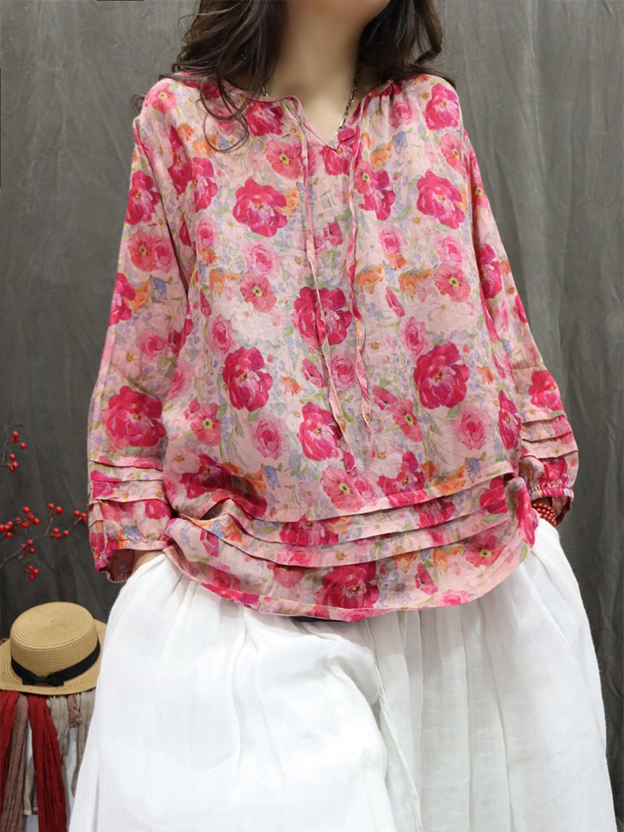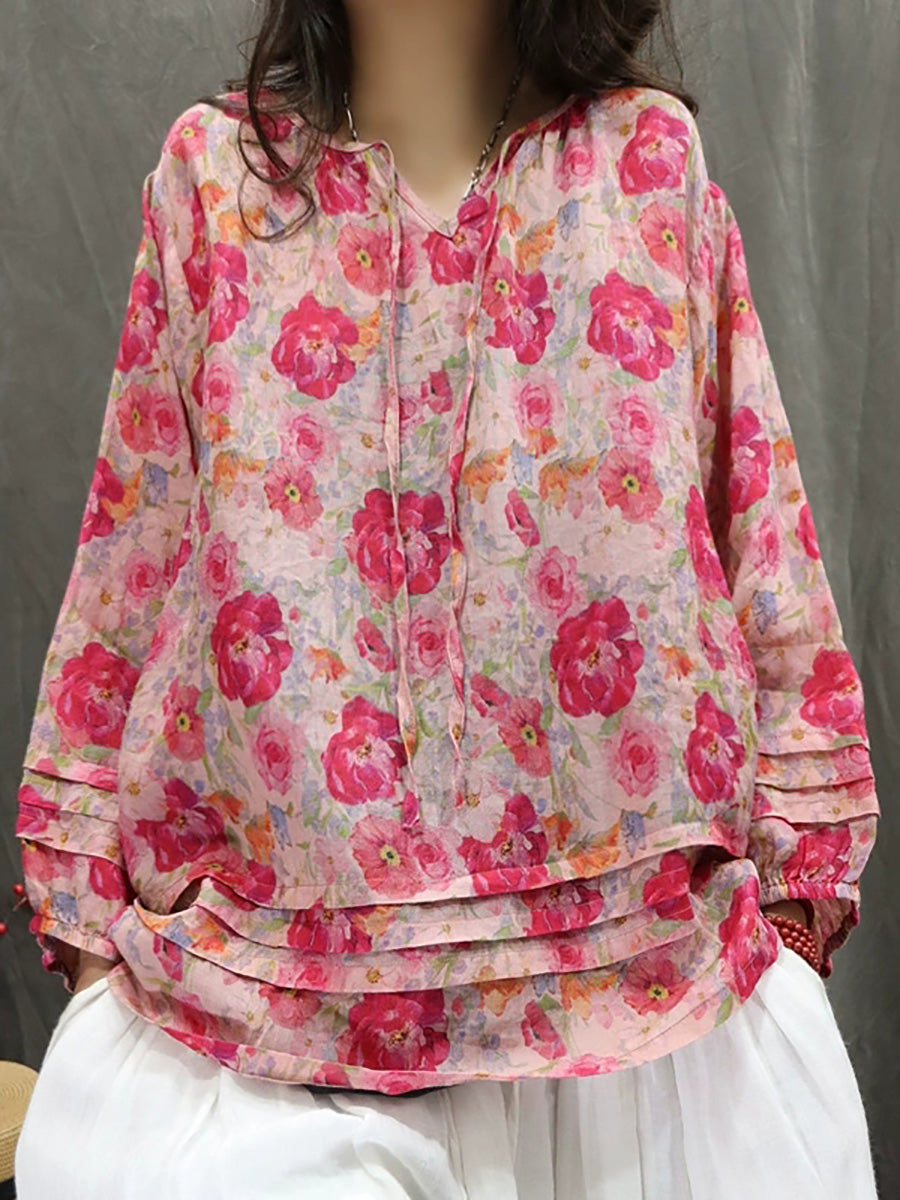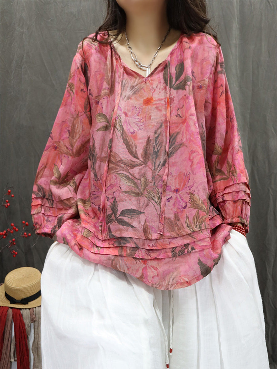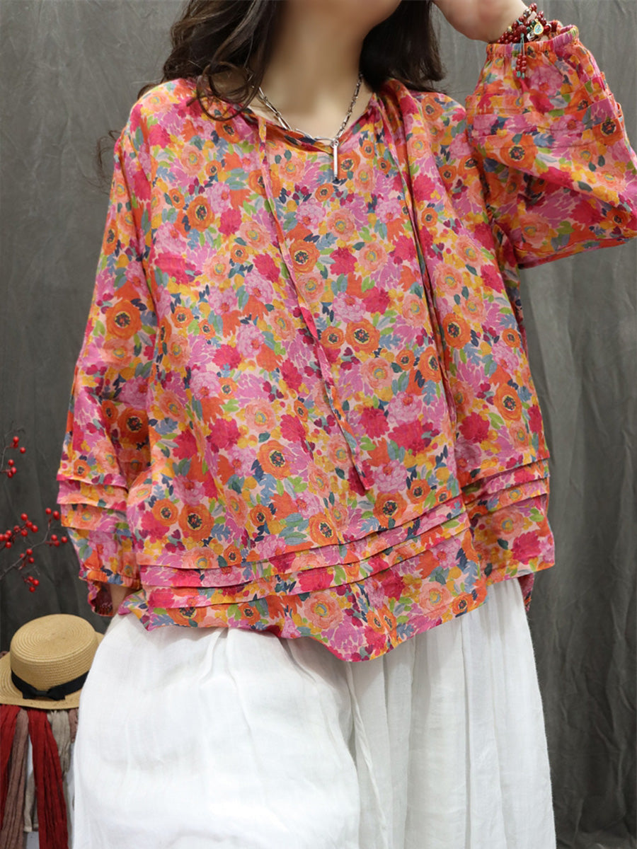 Dámské letní umělecké tričko s kapucí, 100% Ramie