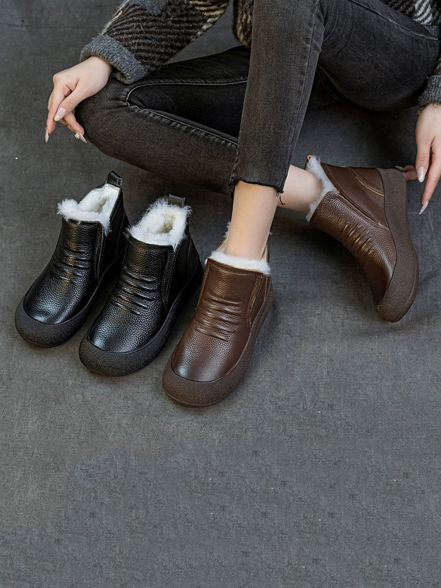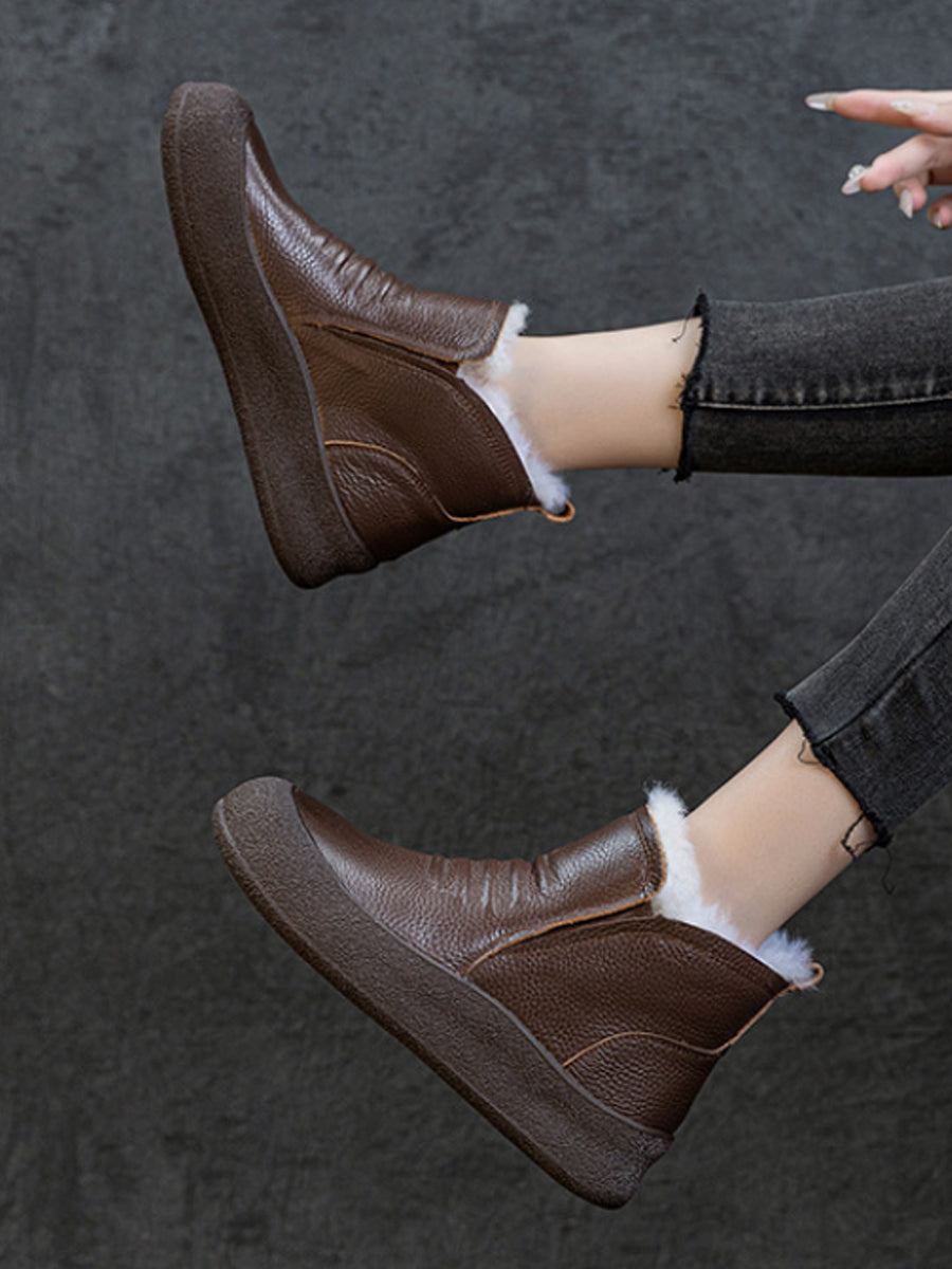 Dámské zimní kotníkové boty z pravé kůže s fleecovou podšívkou