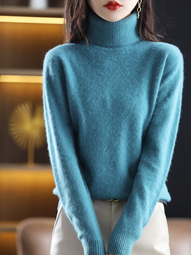 Dámský podzimní ležérní svetr s vlněným úpletem do O s výstřihem