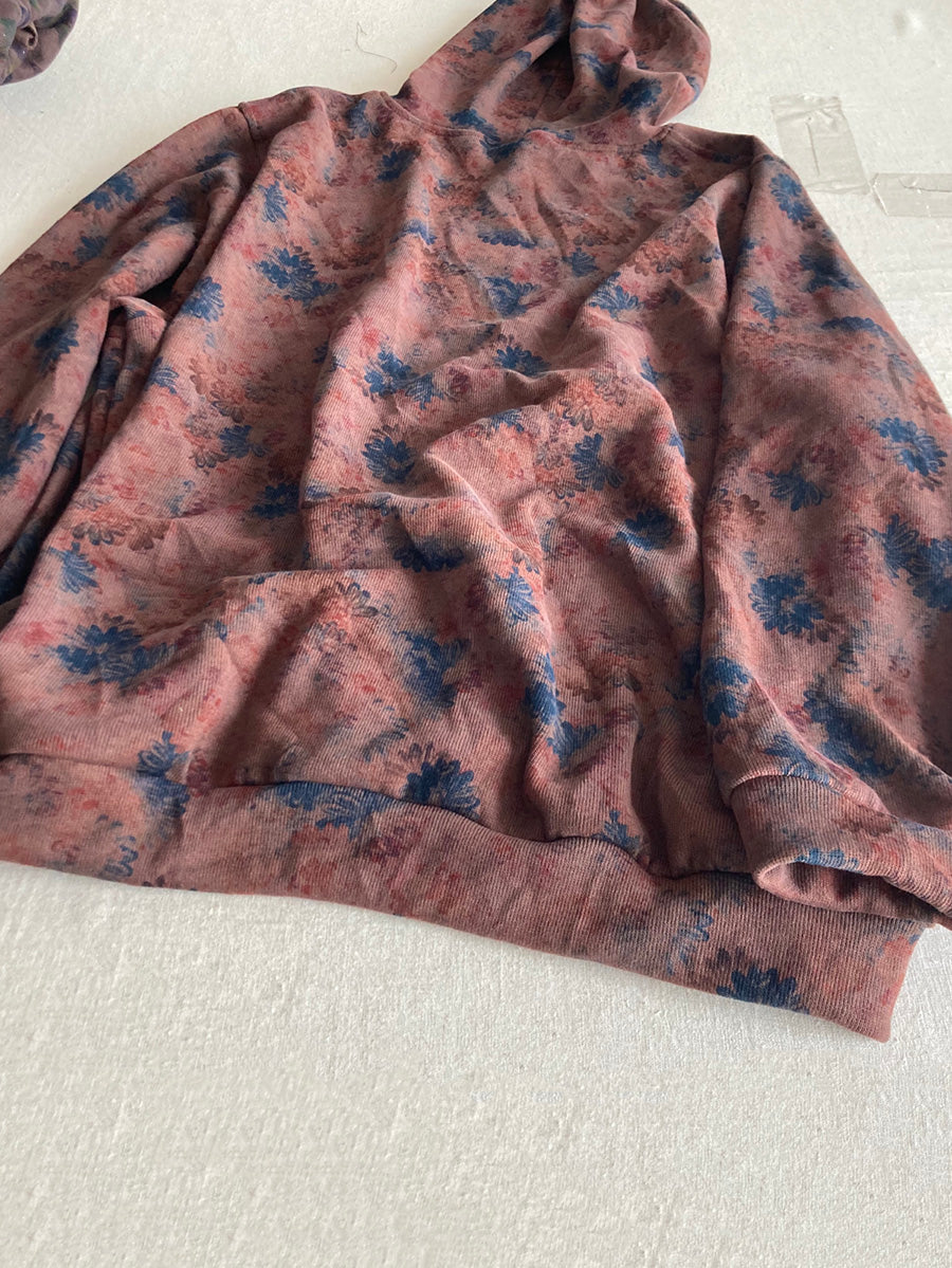 Dámská umělecká podzimní květinová bavlněná halenka s kapucí