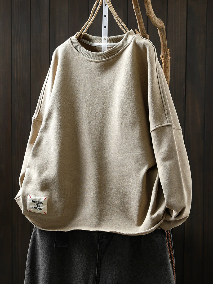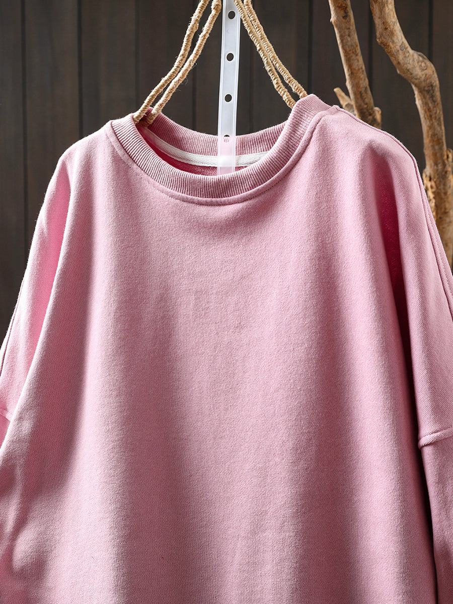 Dámská podzimní ležérní čistě barevná halenka s výstřihem do O-neck