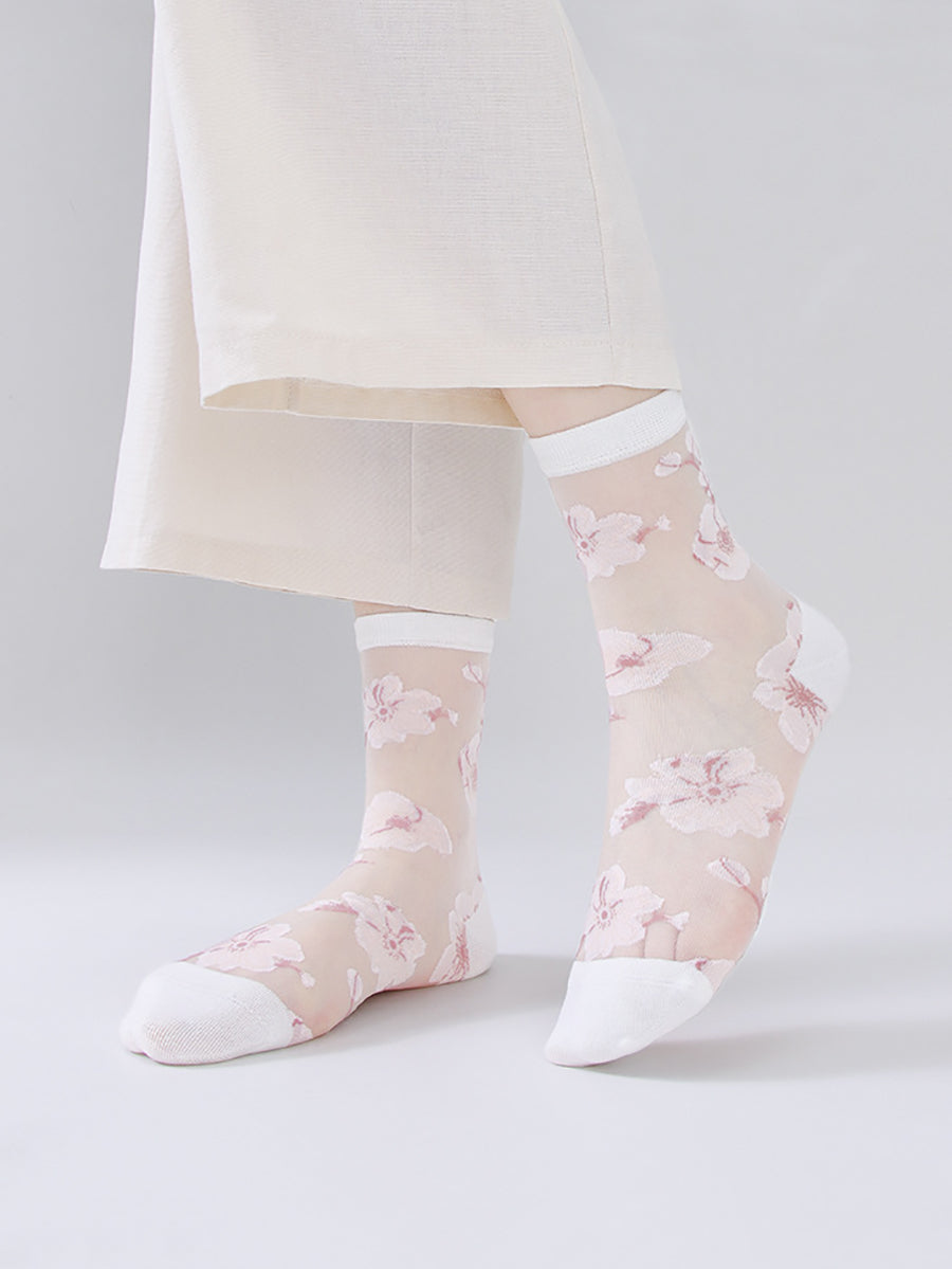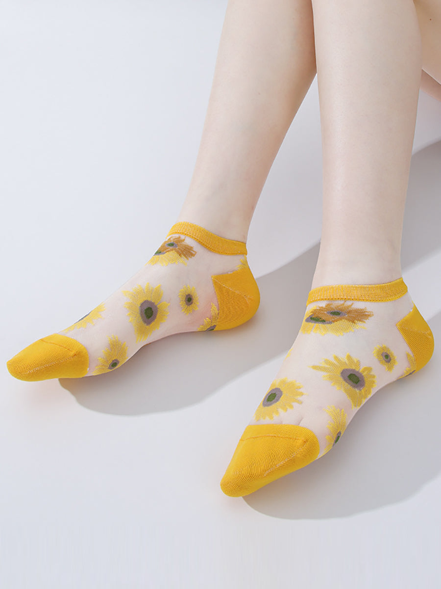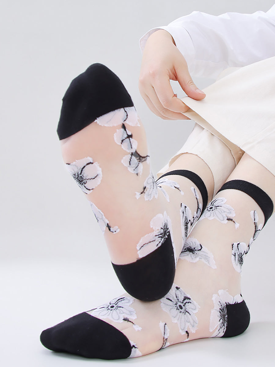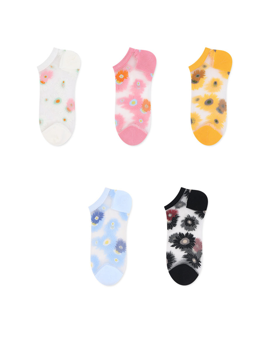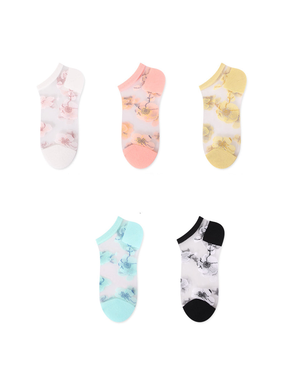 5 párů dámských letních tenkých ponožek s uměleckým květinovým vzorem