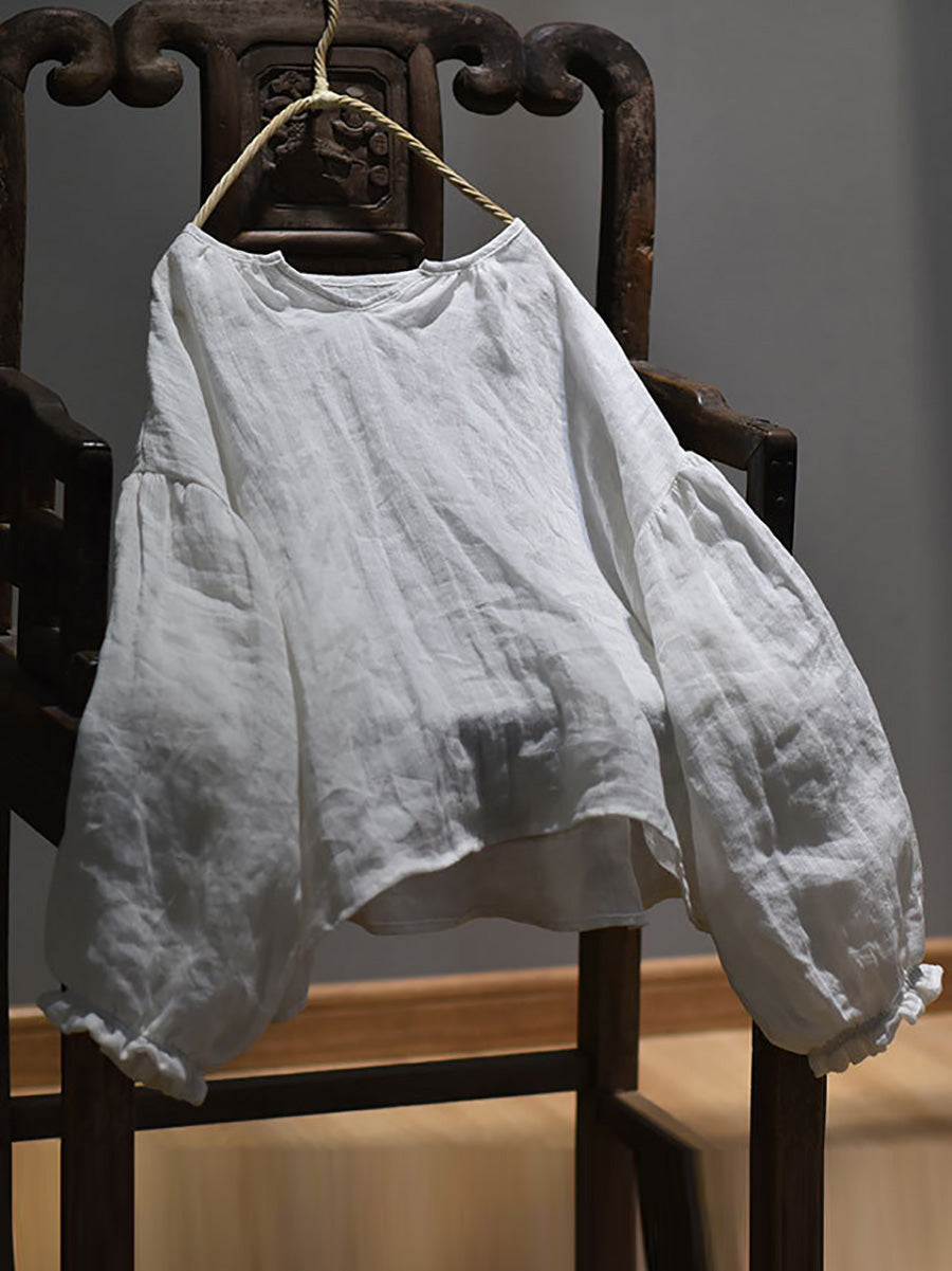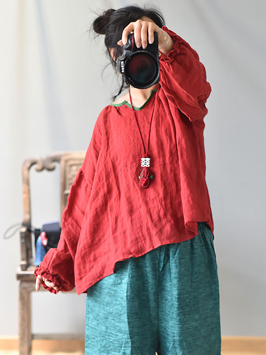 Tato lněná košile má pevný vzor, límeček s výstřihem do V, nabírané rukávy, raglánové rukávy a vintage styl. Skvěle se hodí na jarní období a vyzařuje z něj klasický retro nádech.