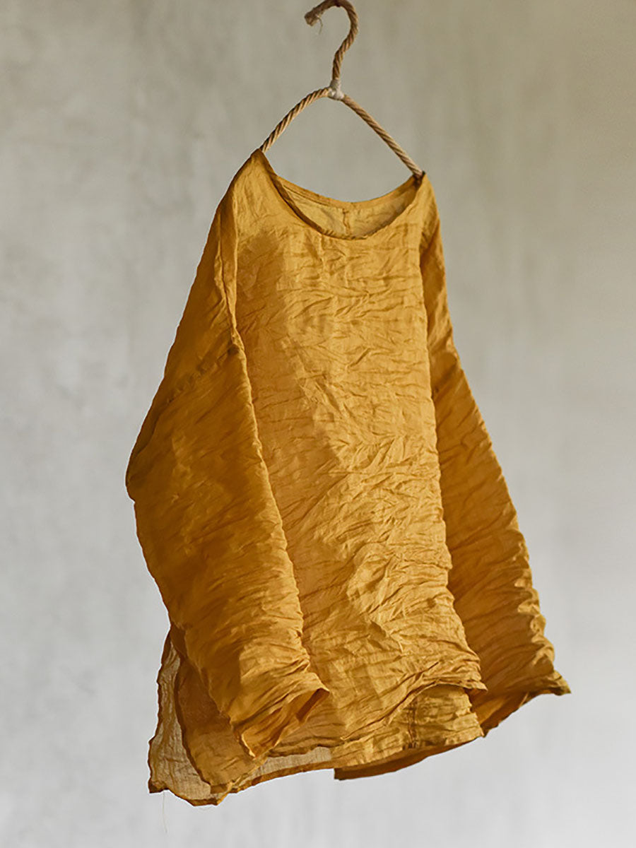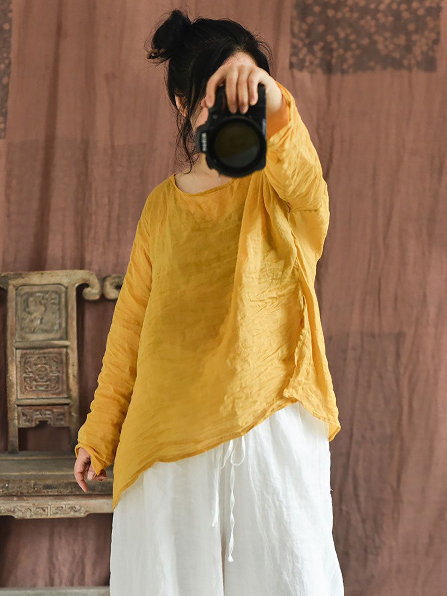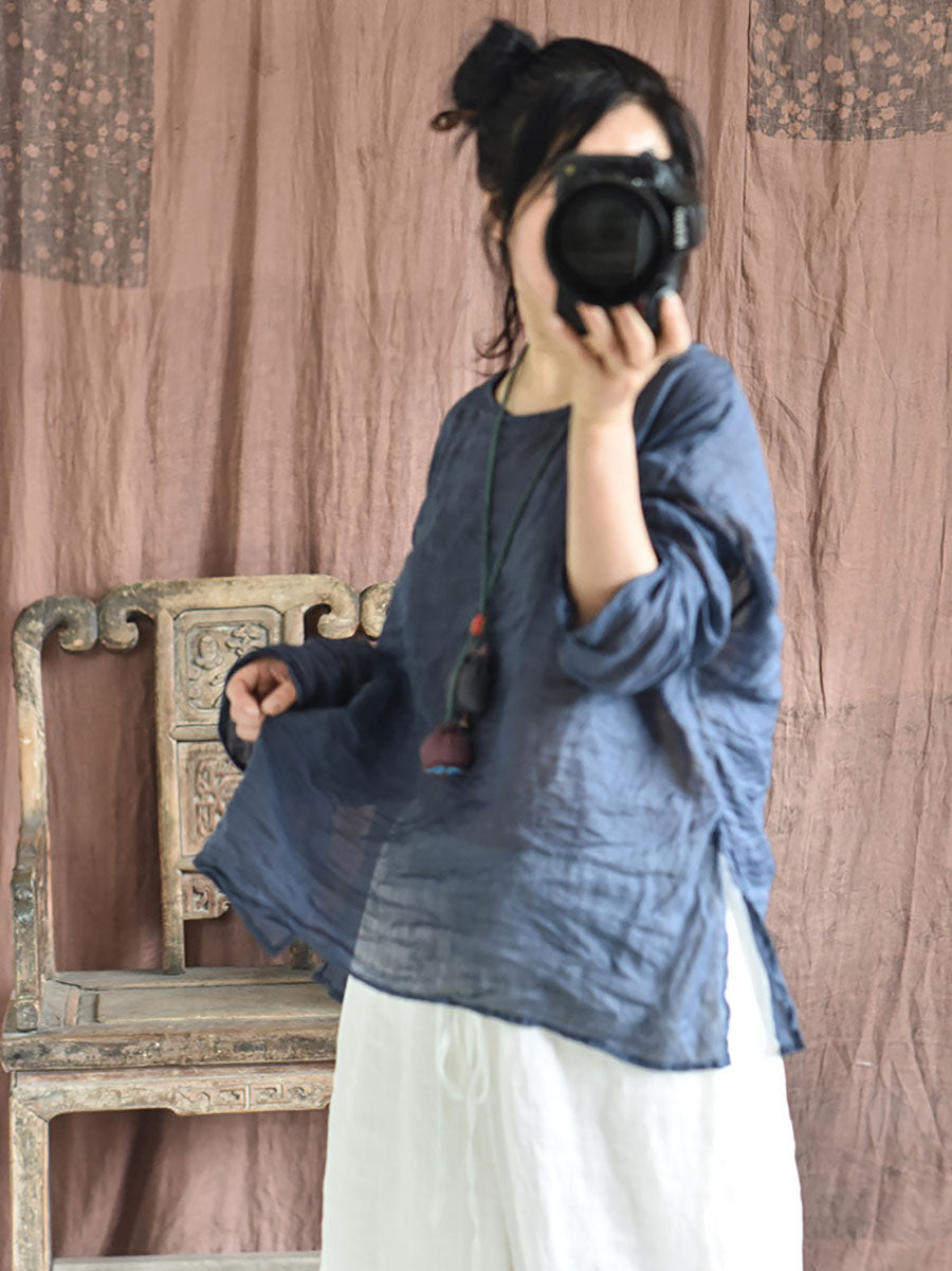 Dámská letní jednobarevná košile Ramie s děleným lemem do O-neck