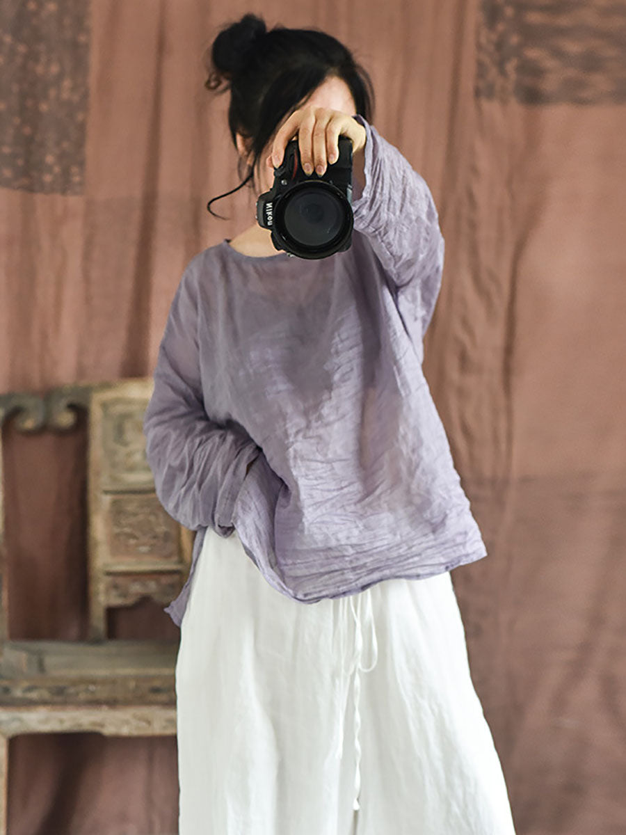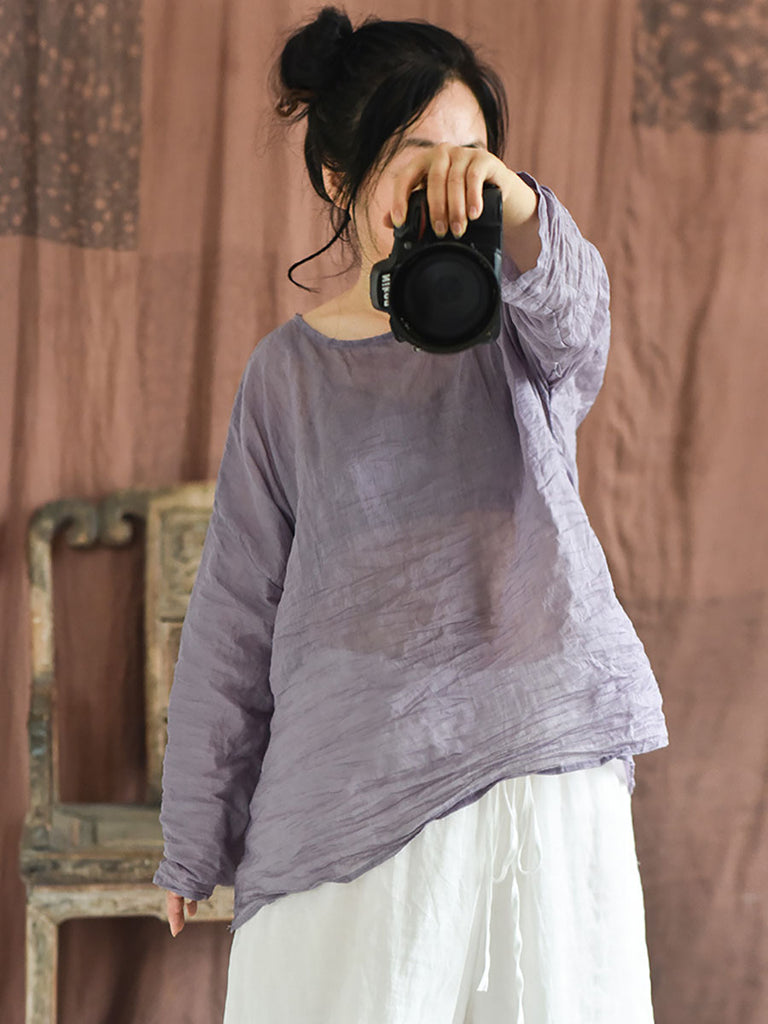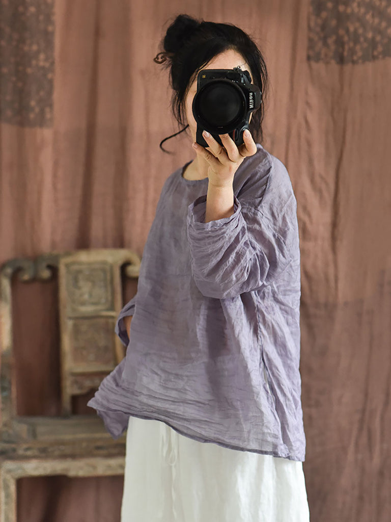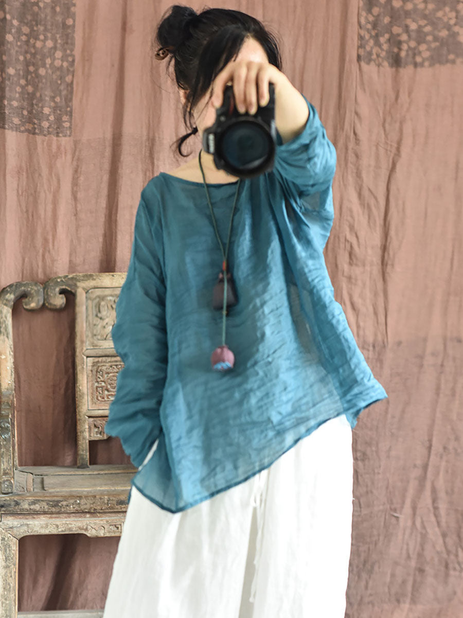 Dámská letní jednobarevná košile Ramie s děleným lemem do O-neck