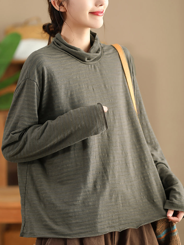 Dámská bavlněná halenka s retro podzimním proužkem do O s výstřihem
