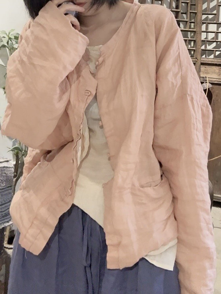 Tento produkt se vyznačuje pevným vzorem a je vyroben z kombinace materiálů ramie a bavlny, což má za následek jedinečný a vintage styl. Má stojatý límec a plné raglánové rukávy, díky čemuž se hodí do chladnějších měsíců podzimu a zimy.