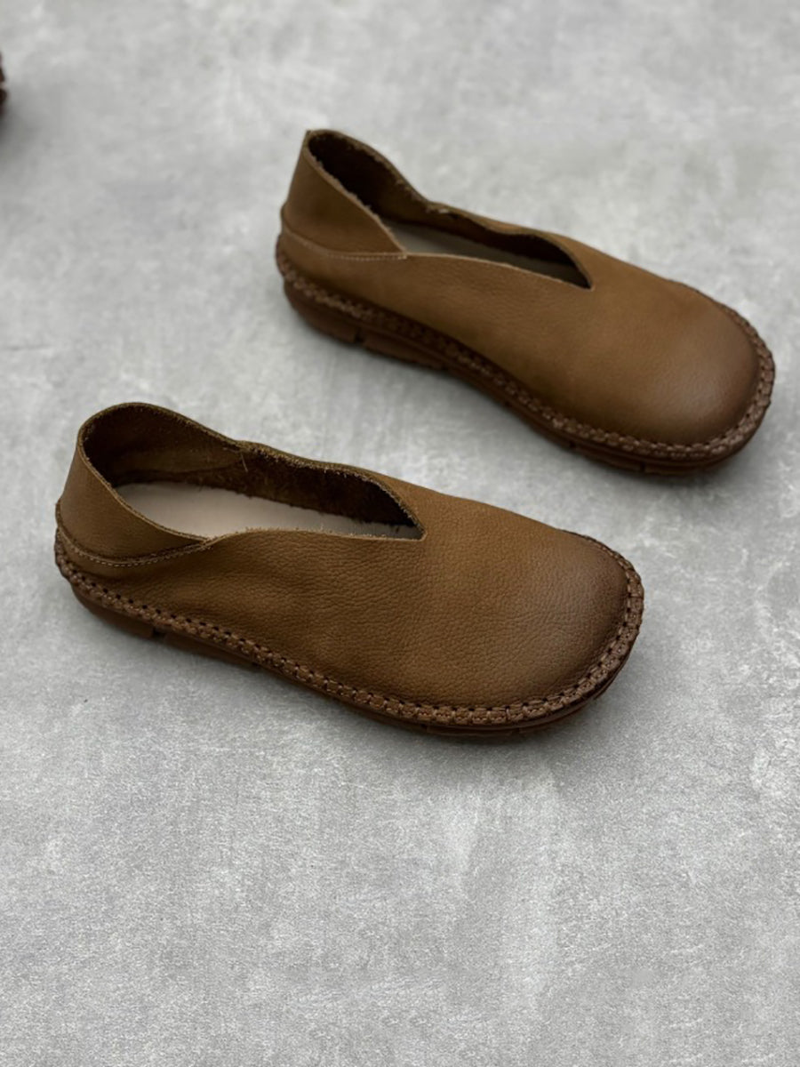 Dámské letní vintage pevné kožené měkké ploché boty