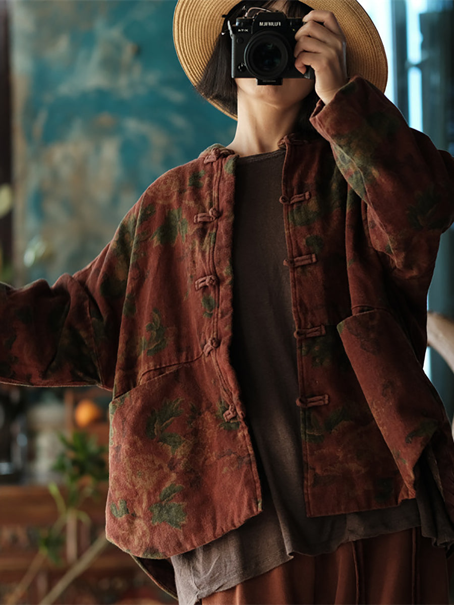Dámský bavlněný kabát s límečkem s květinovým stojáčkem