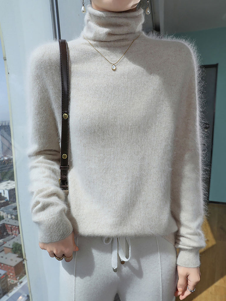 Dámský podzimní ležérní svetr s vlněným úpletem do O s výstřihem
