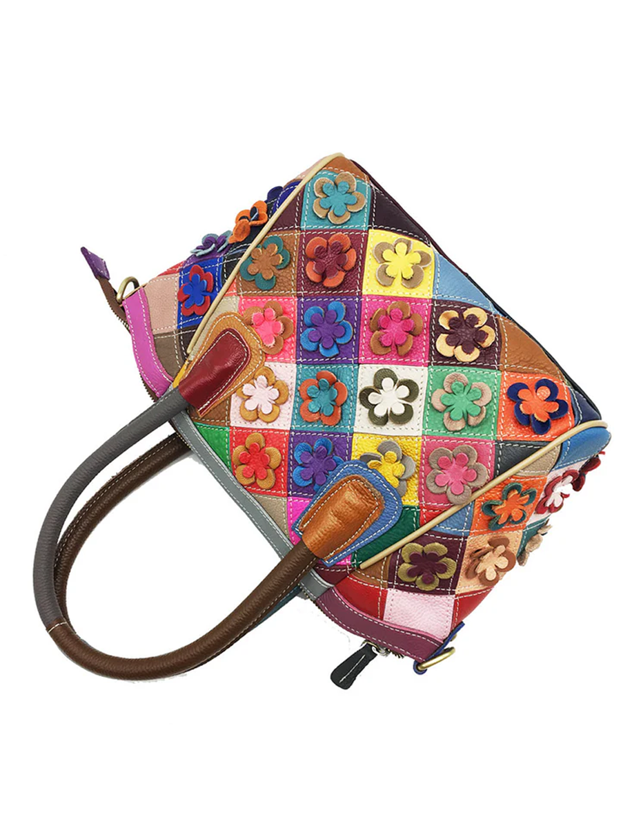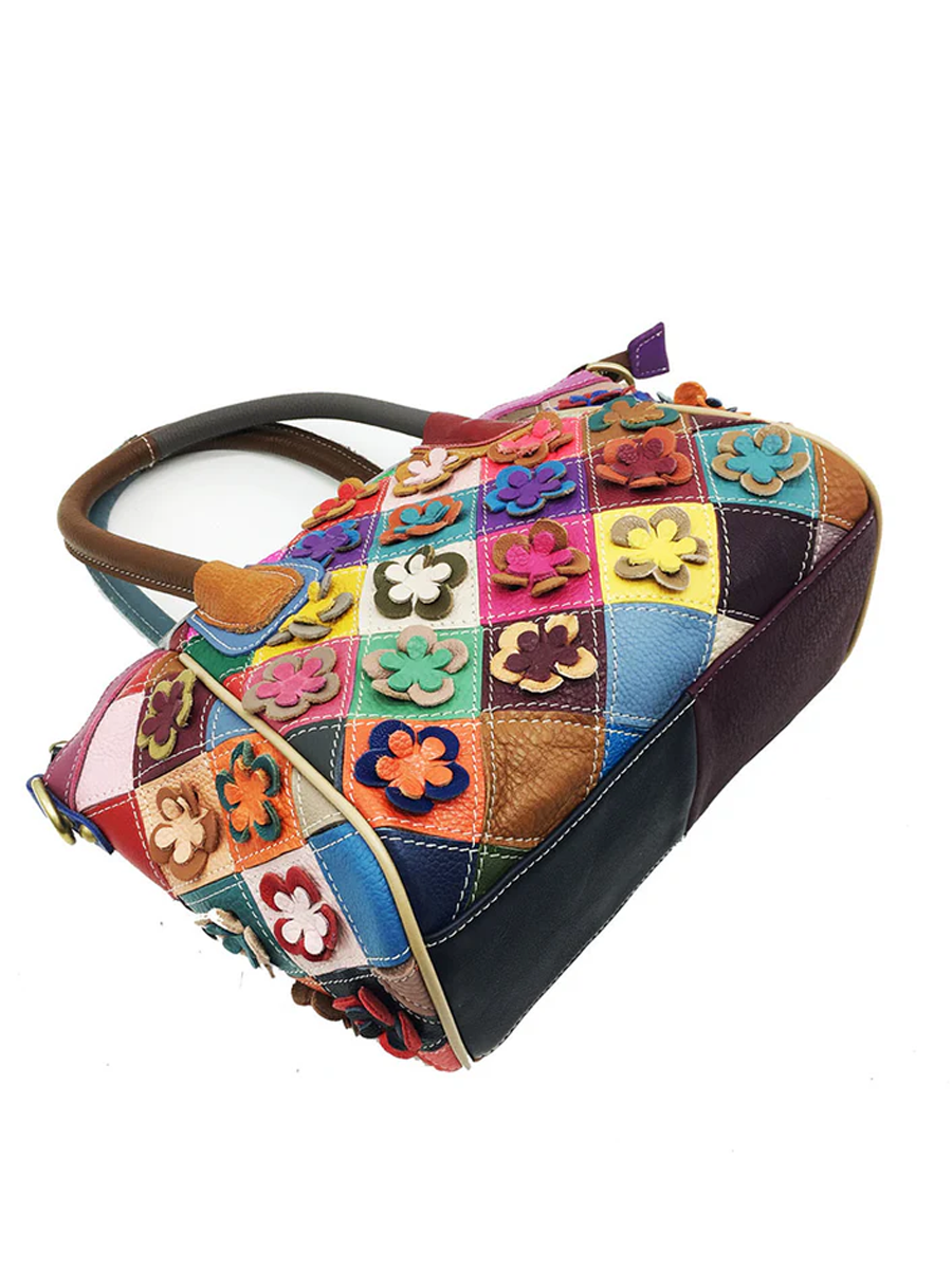 Květinová dámská kožená kabelka