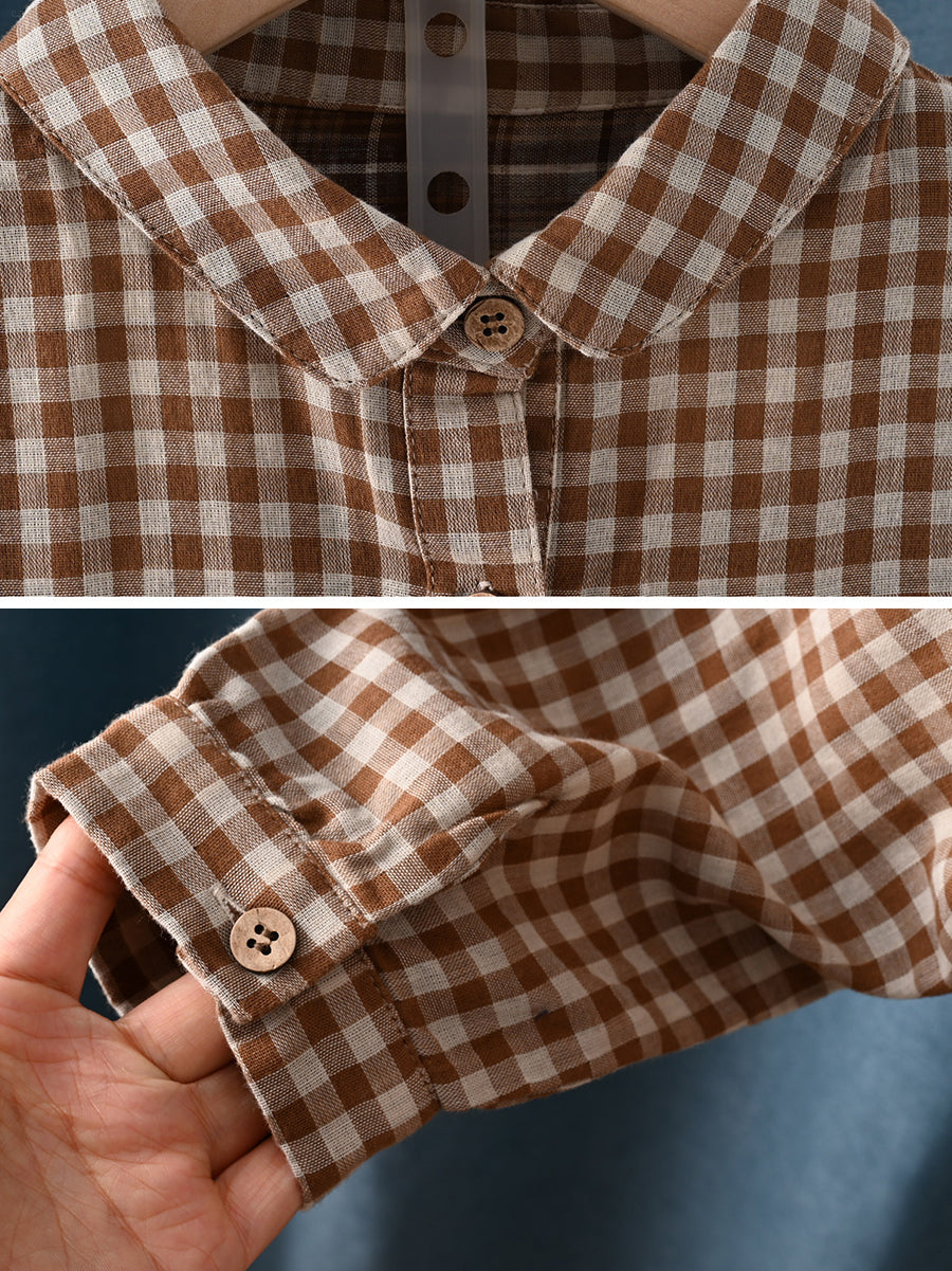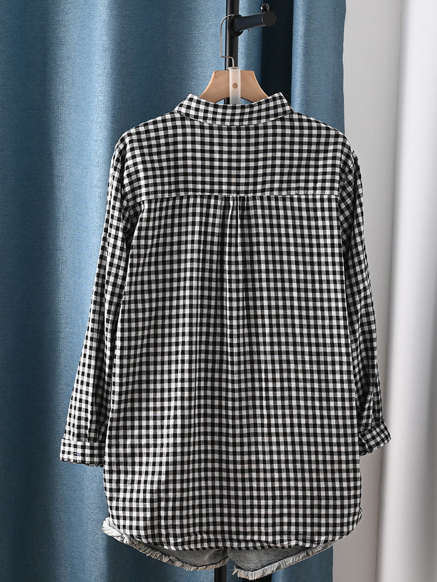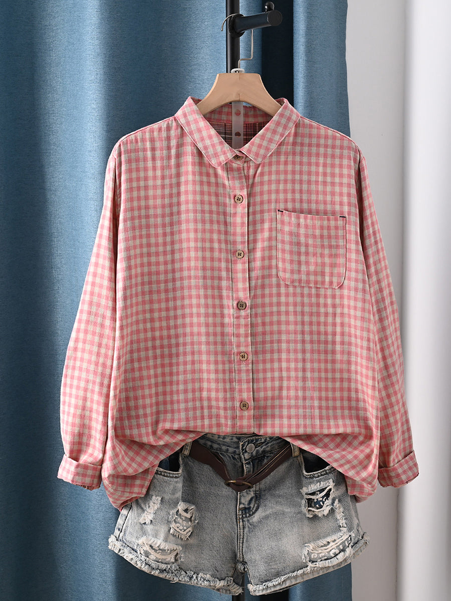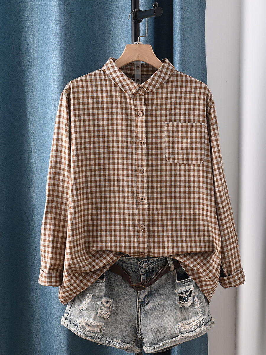 Dámská umělecká podzimní kostkovaná košile s odkládacím límcem, 100% bavlna