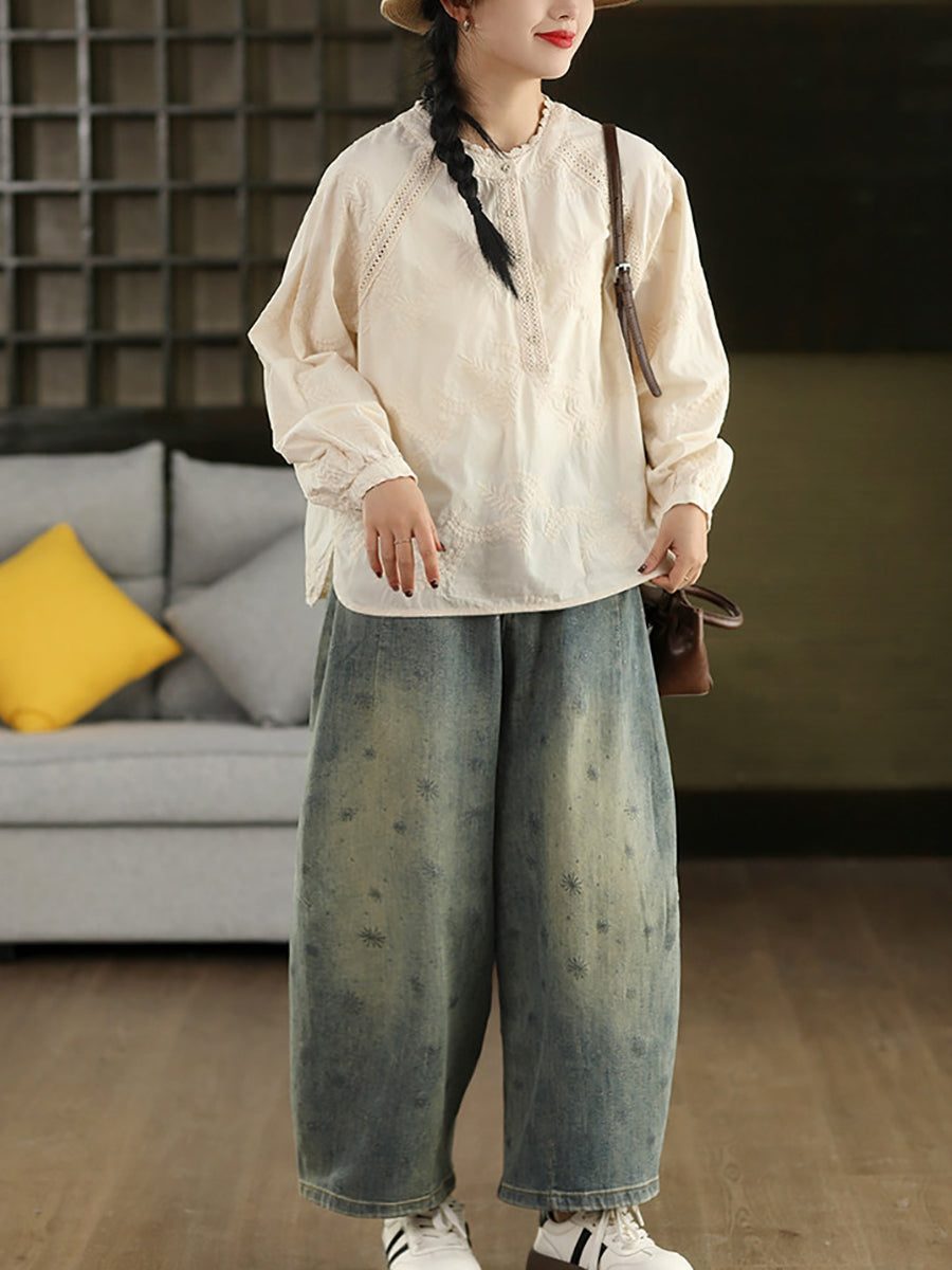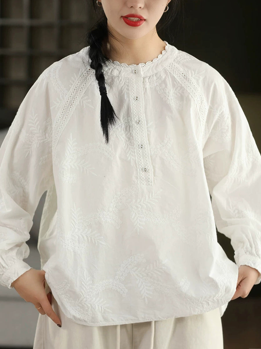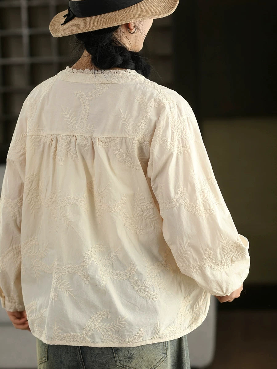 Dámské jarní tričko s uměleckou výšivkou ze 100% bavlny