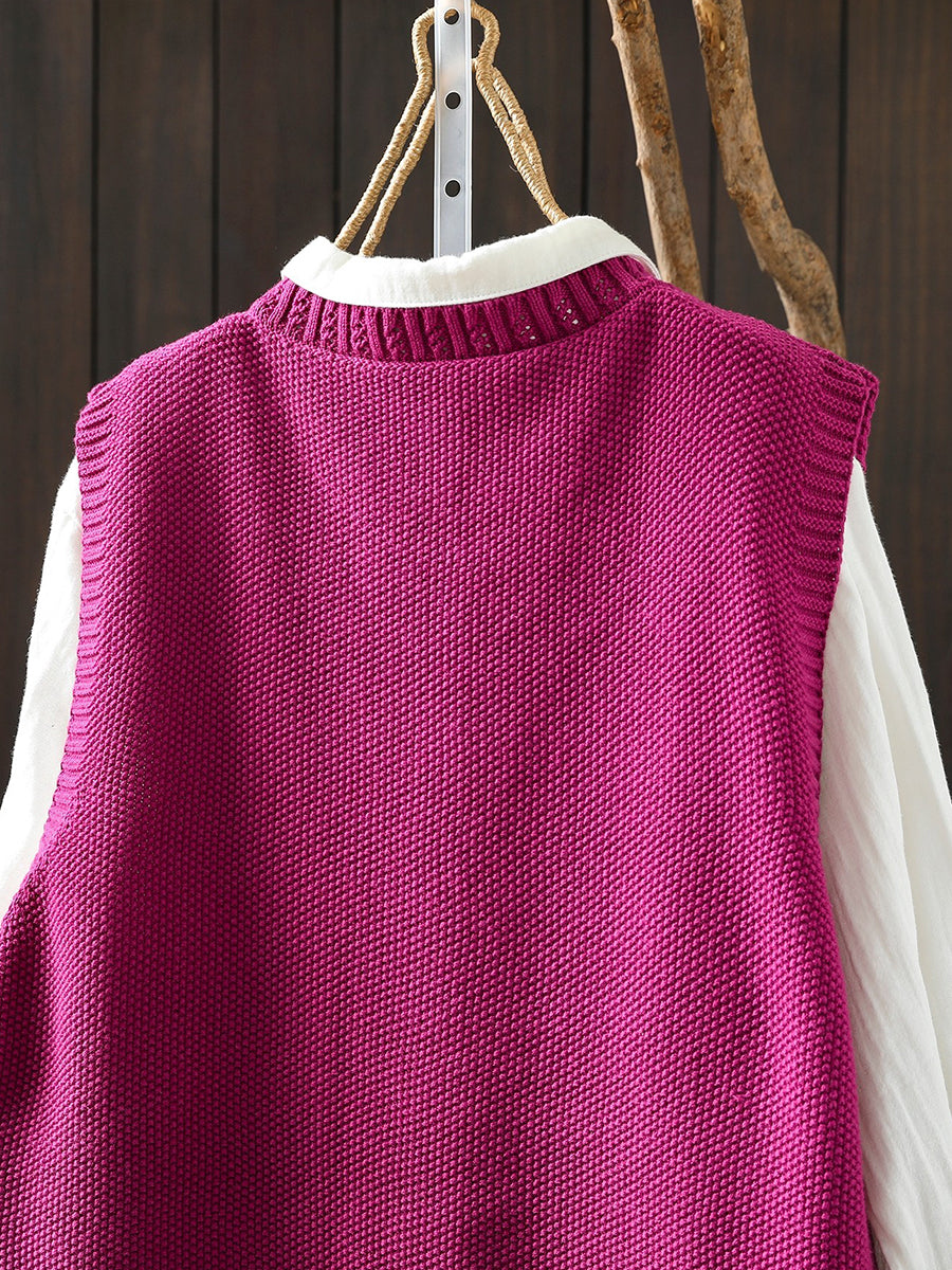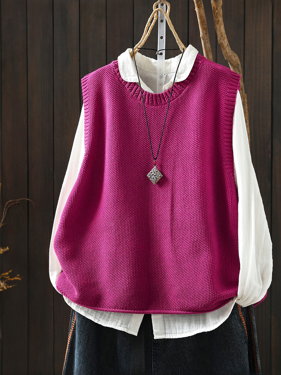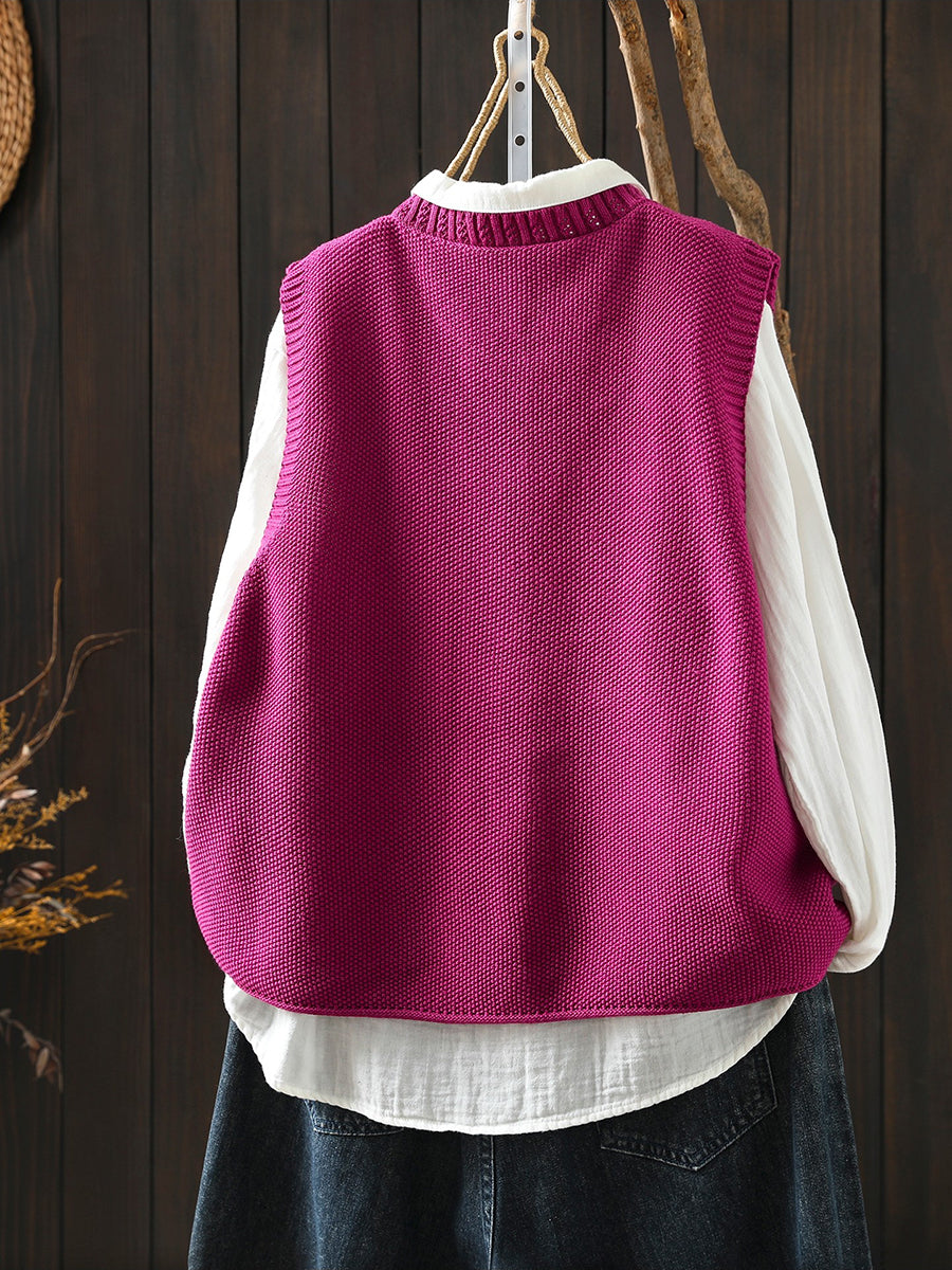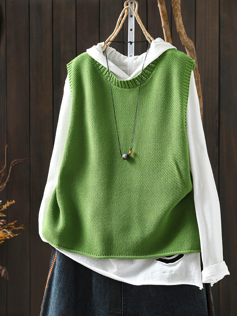 Dámská jarní umělecká pletená vesta s čistými barvami a výstřihem do O-neck