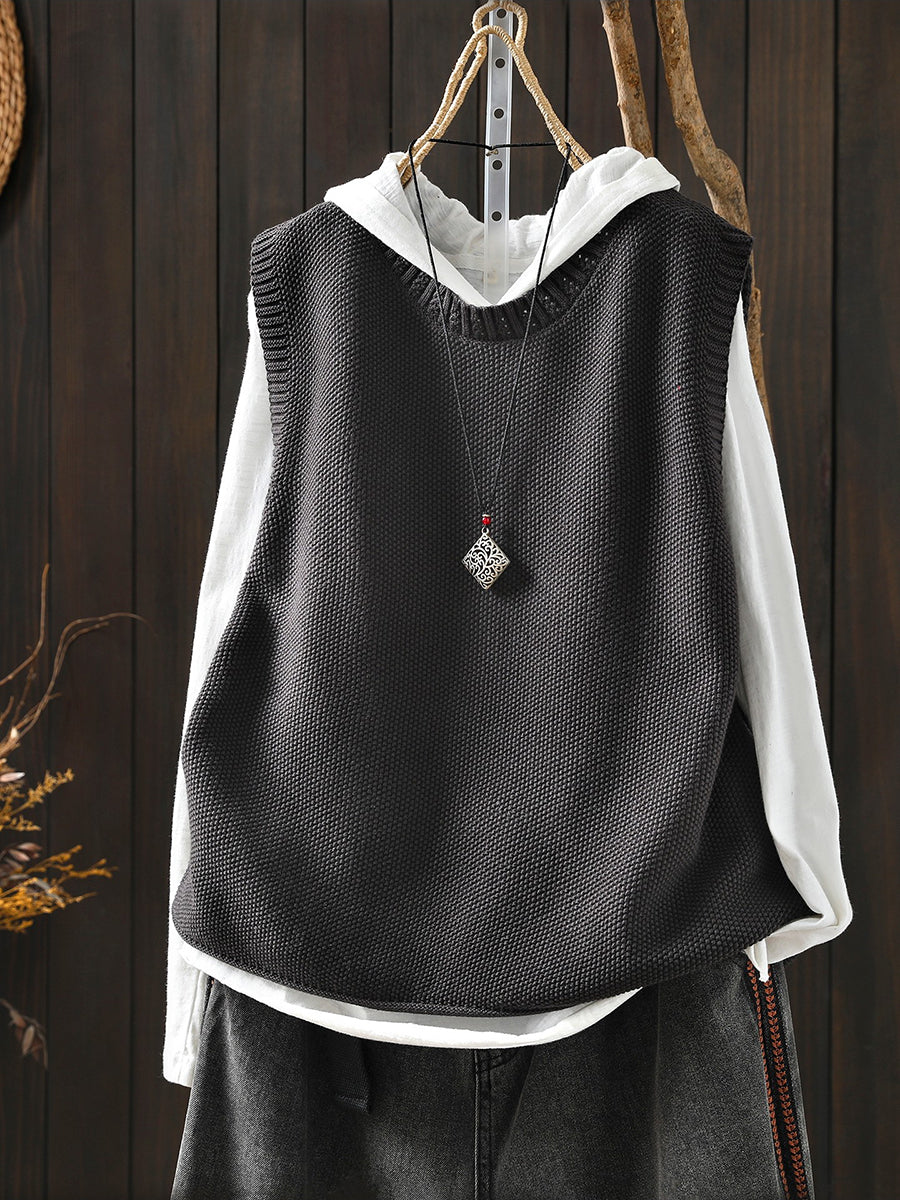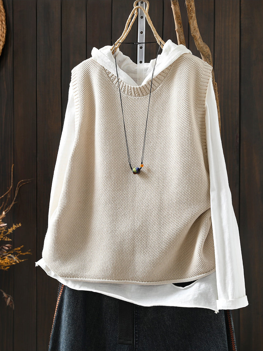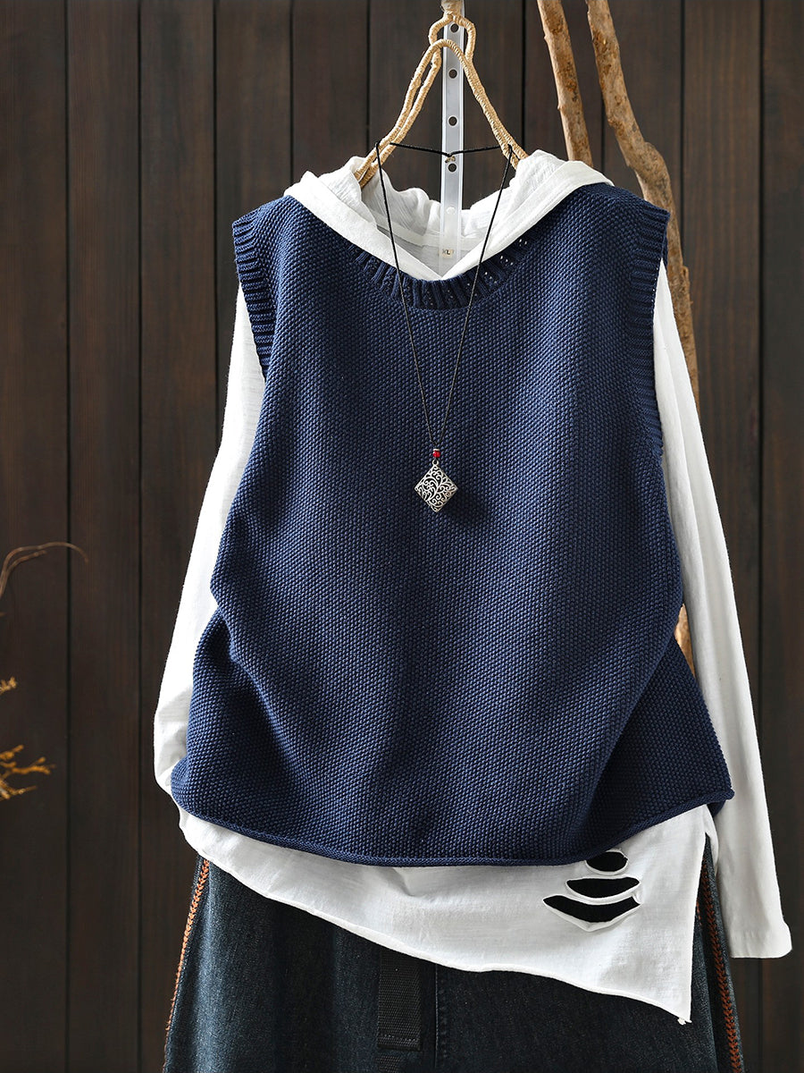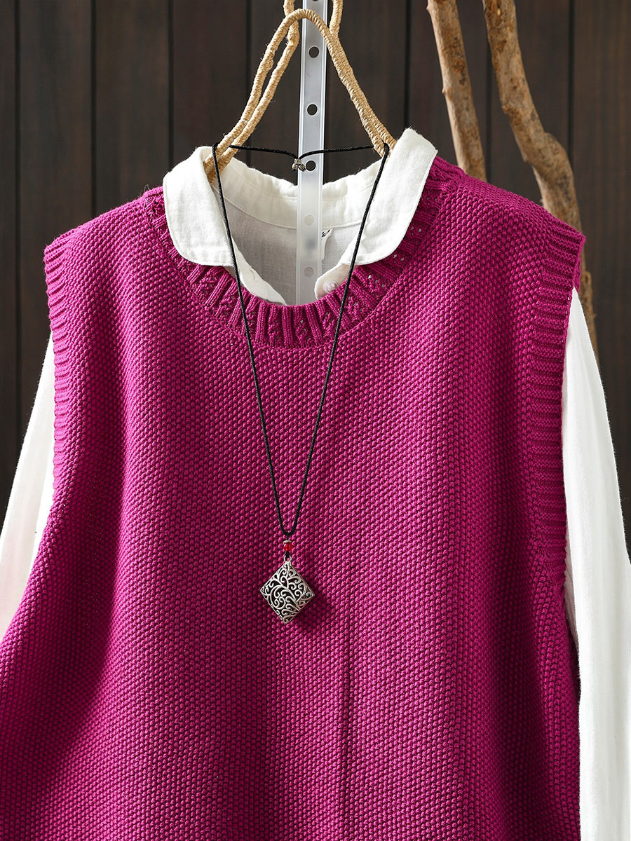 Dámská jarní umělecká pletená vesta s čistými barvami a výstřihem do O-neck