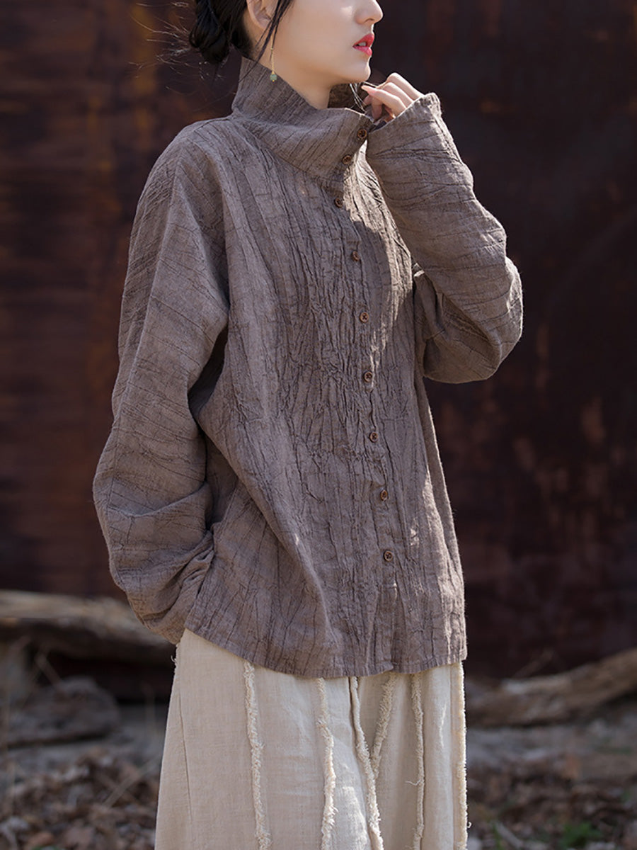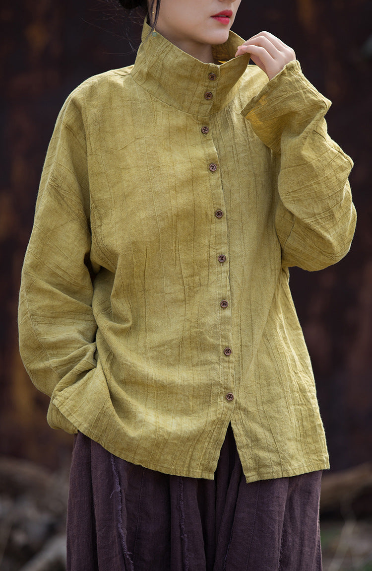 Dámská jarní umělecká batikovaná košile se stojáčkem