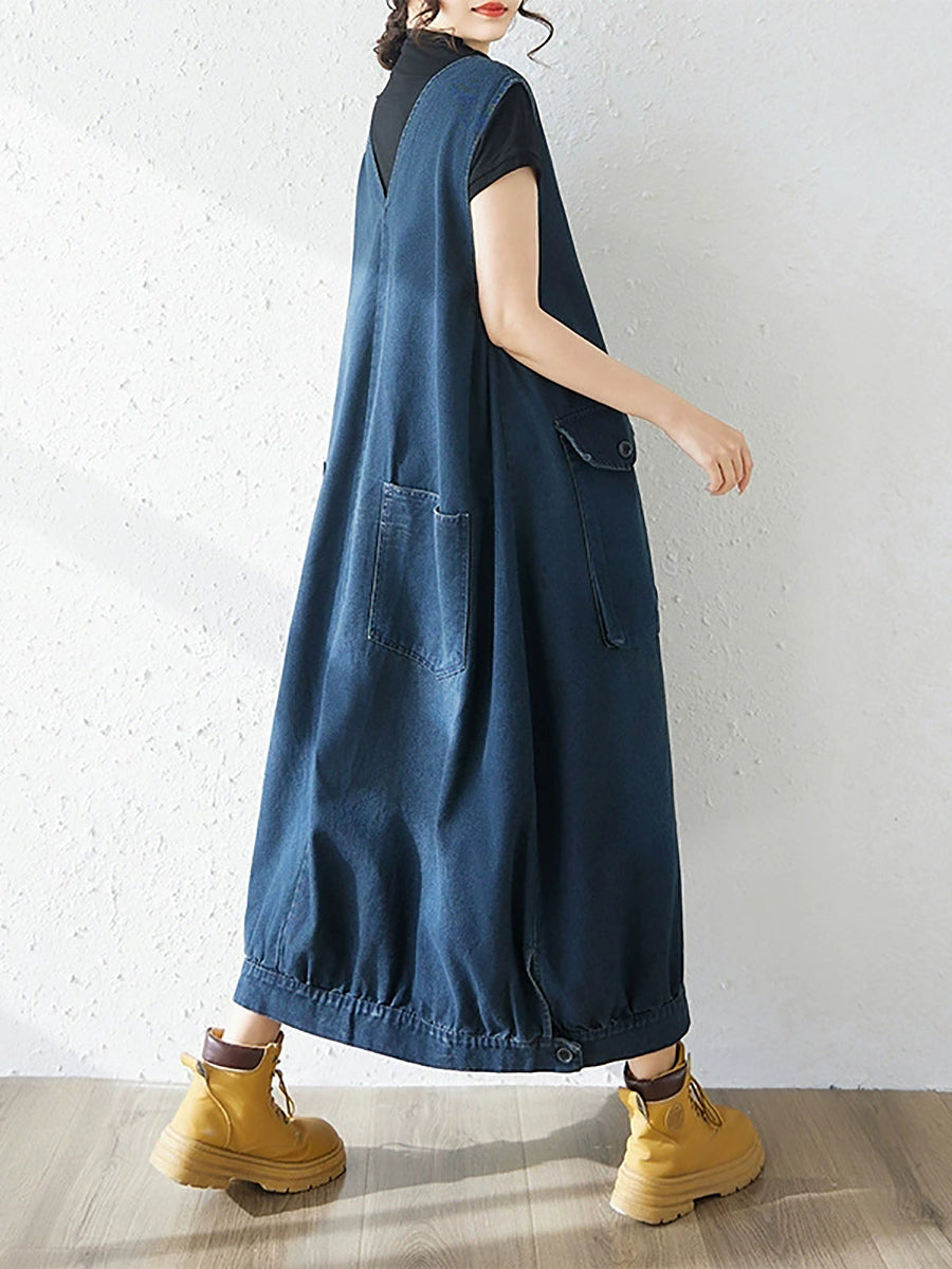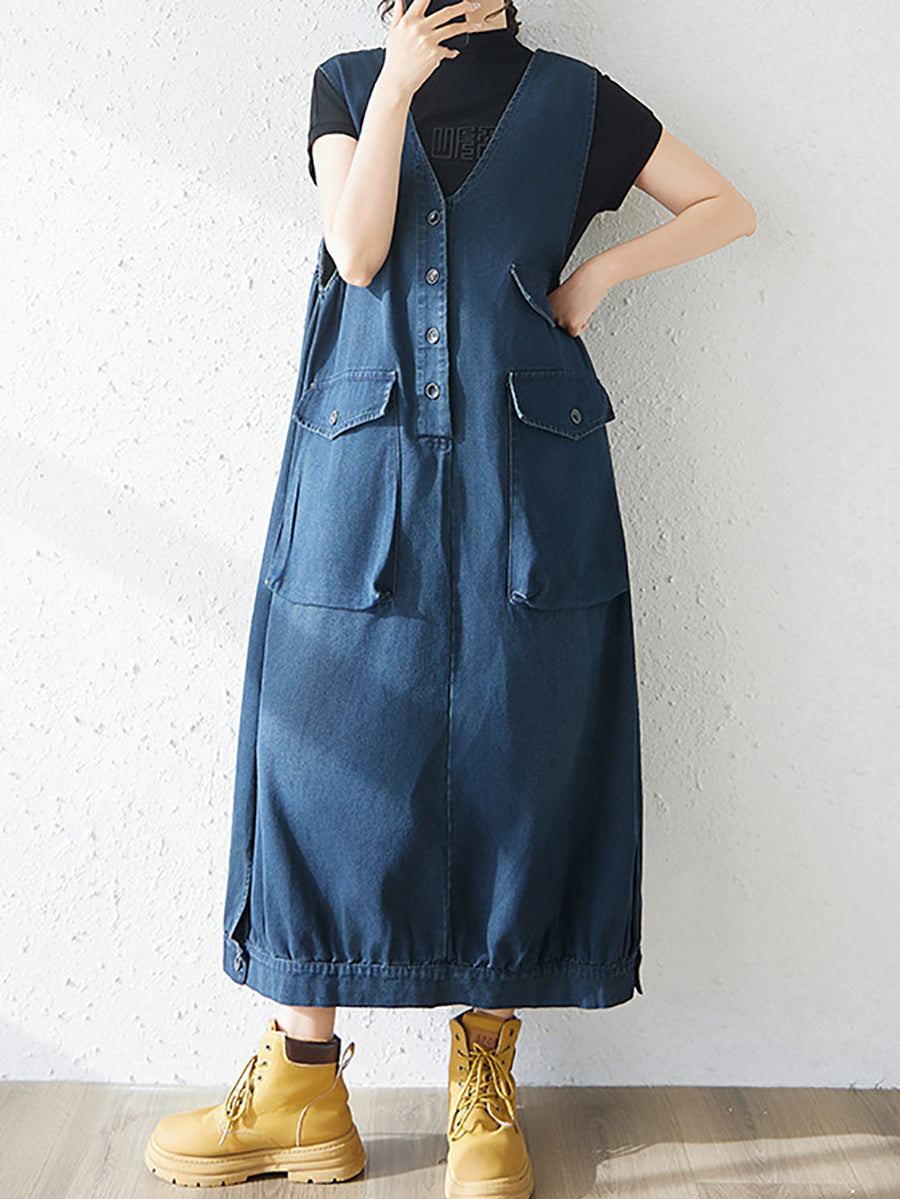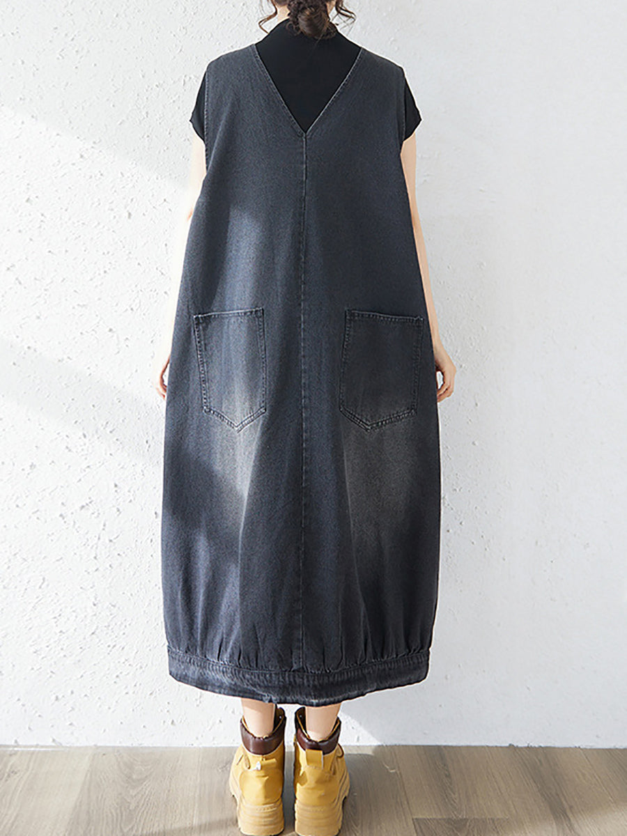 Dámské jarní ležérní džínové šaty s výstřihem do V v čistě barevných barvách