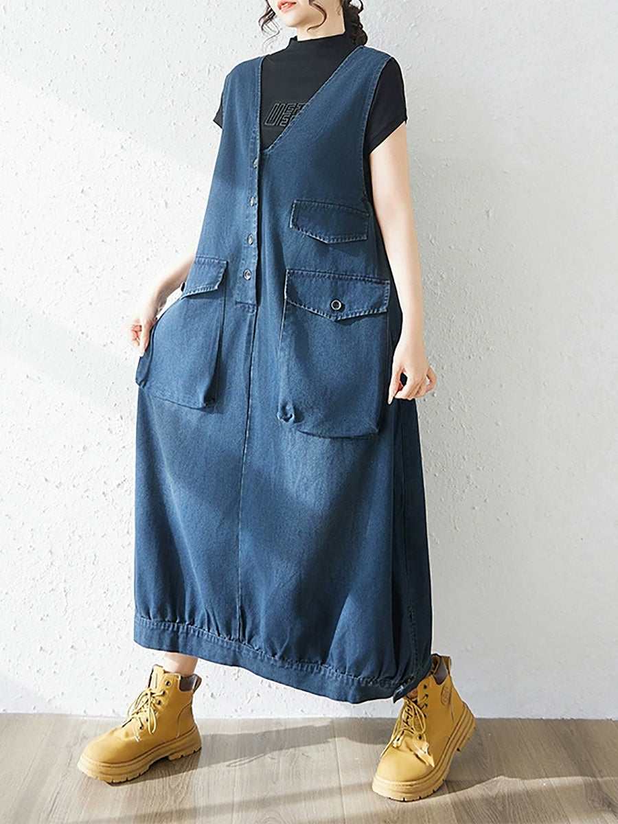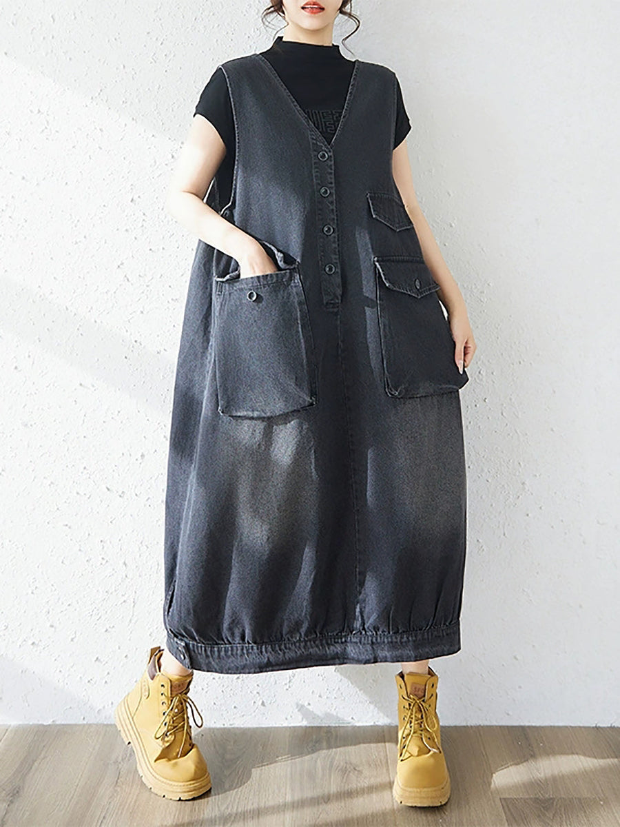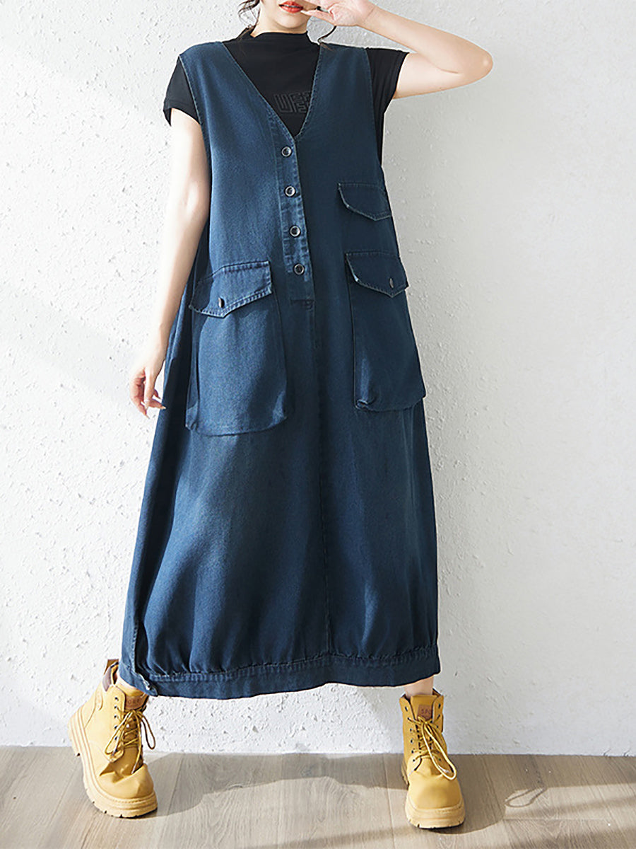 Dámské jarní ležérní džínové šaty s výstřihem do V v čistě barevných barvách