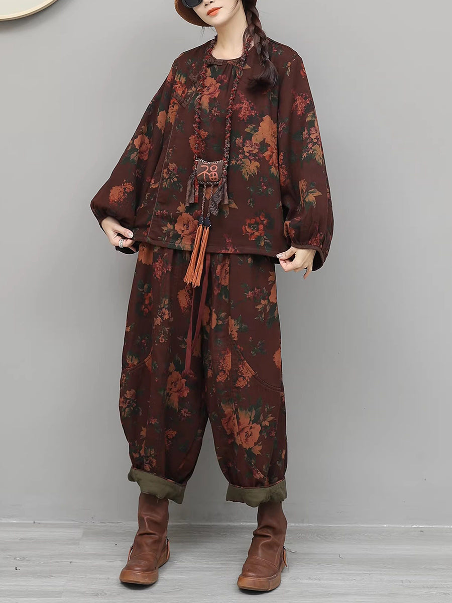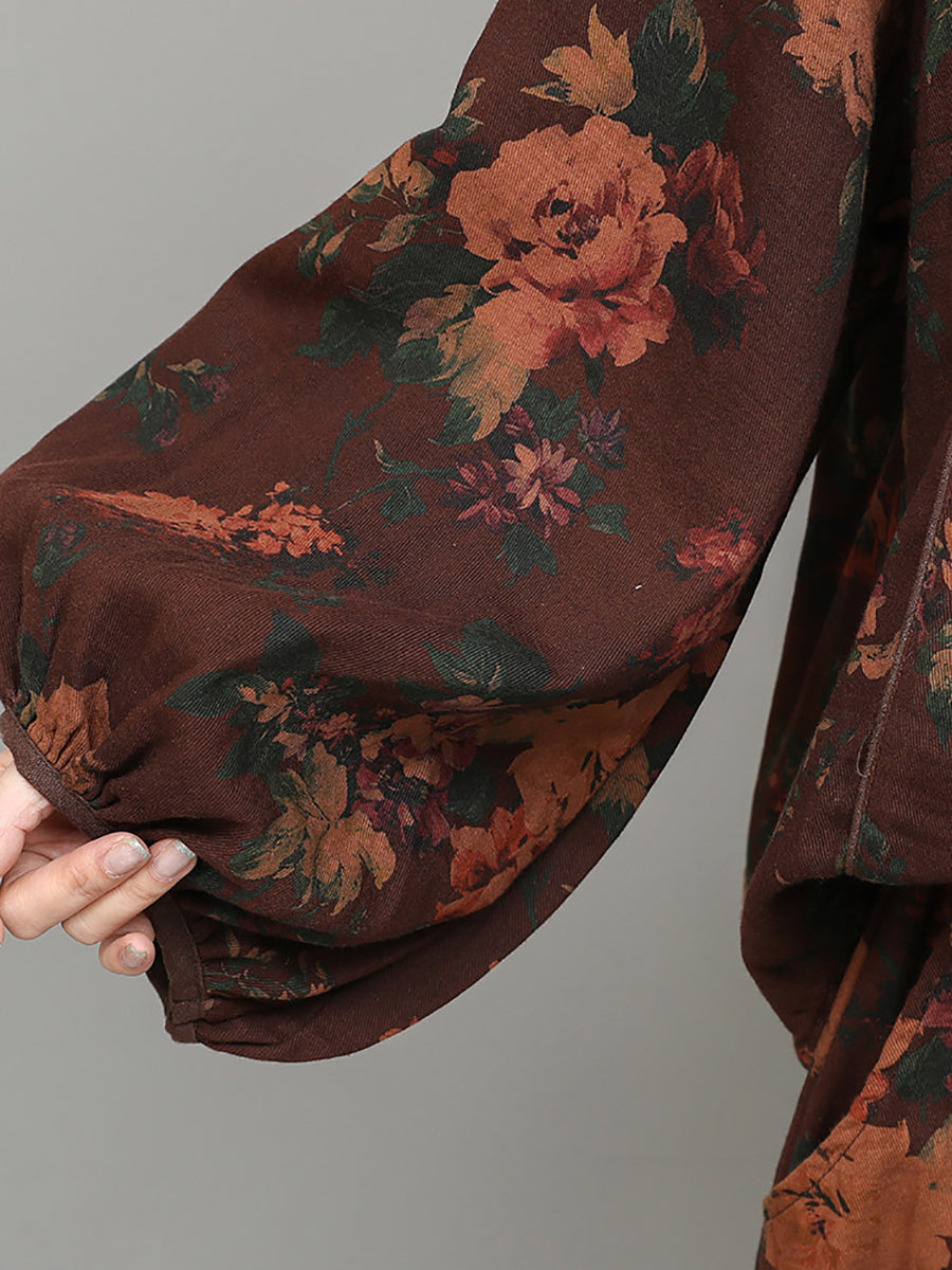 Dámské jarní etnické květinové kostýmy s výstřihem do O-neck