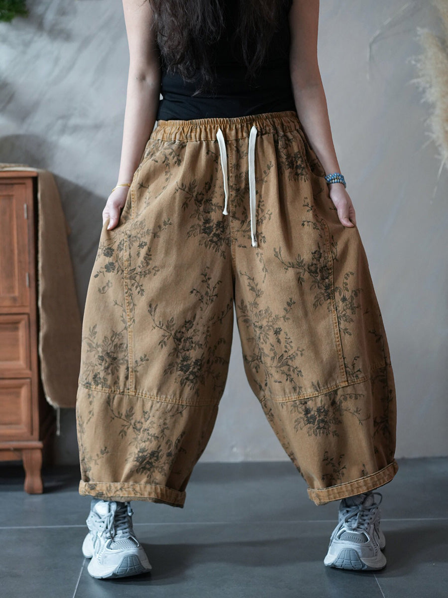 Dámské jarní retro květinové harémové kalhoty