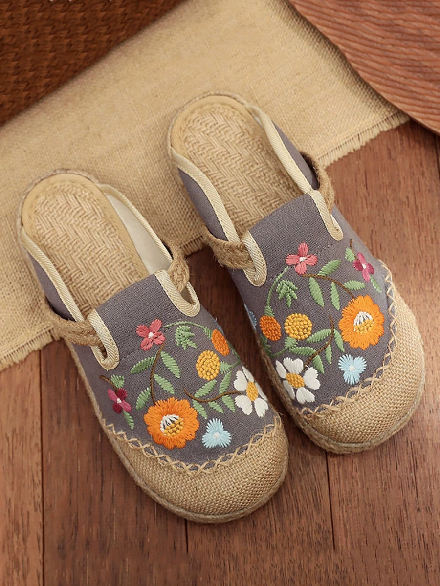 Dámské letní umělecké květinové lněné pantofle