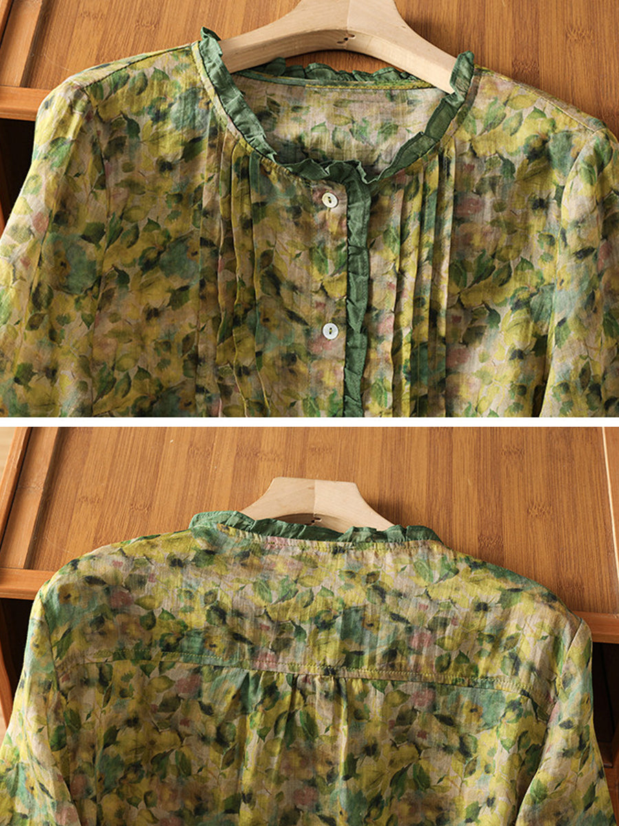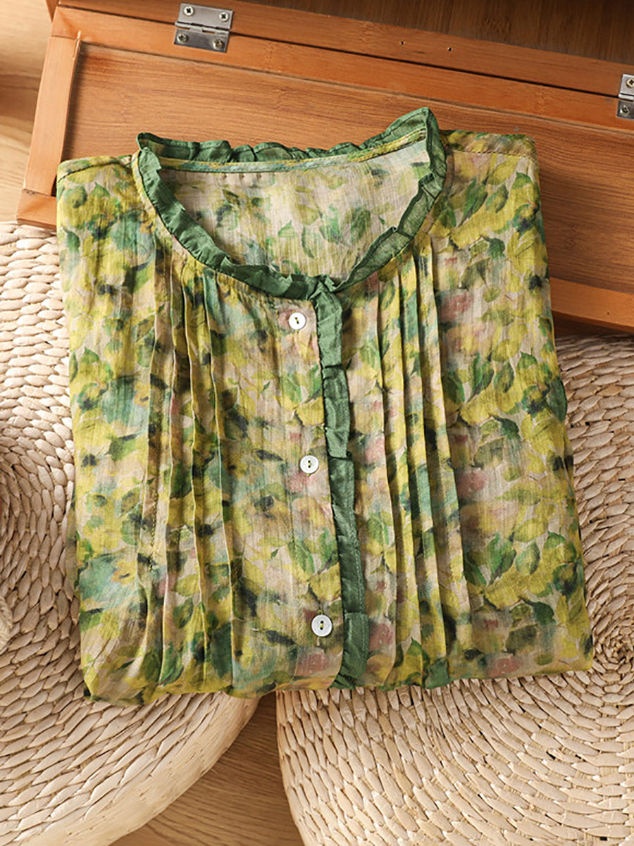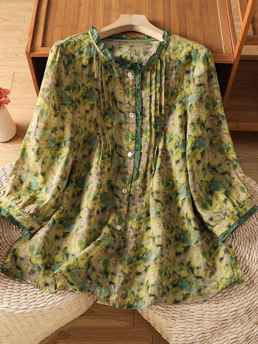 Dámská letní umělecká květinová halenka s výstřihem do O-neck