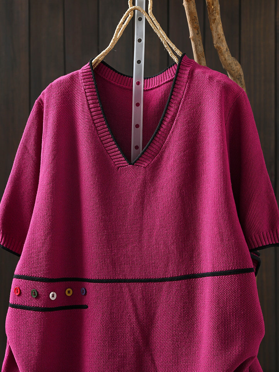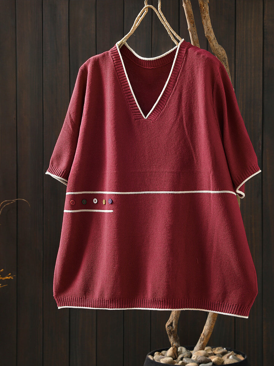 Dámská letní umělecká pletená halenka s výstřihem do V
