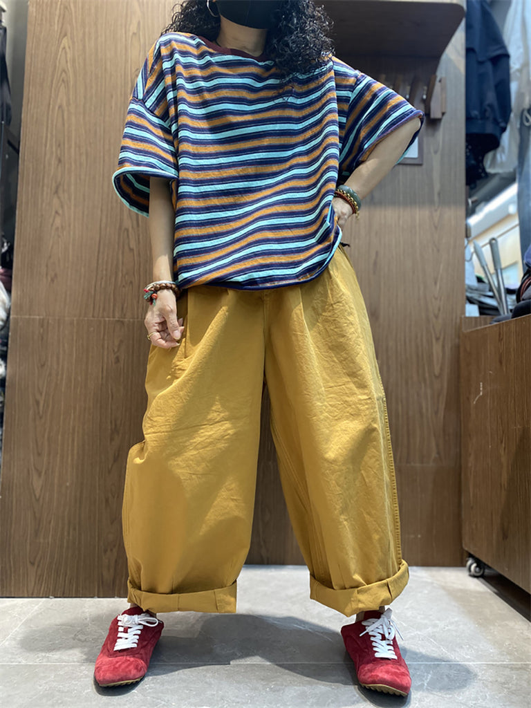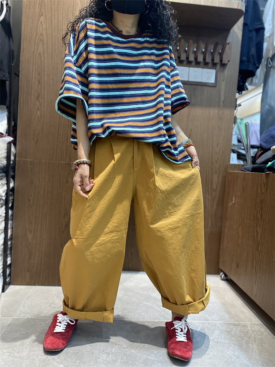 Dámská letní ležérní bavlněná košile s proužkem do O s výstřihem