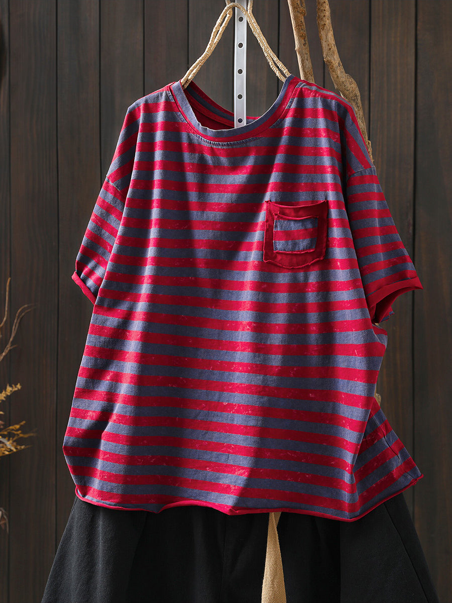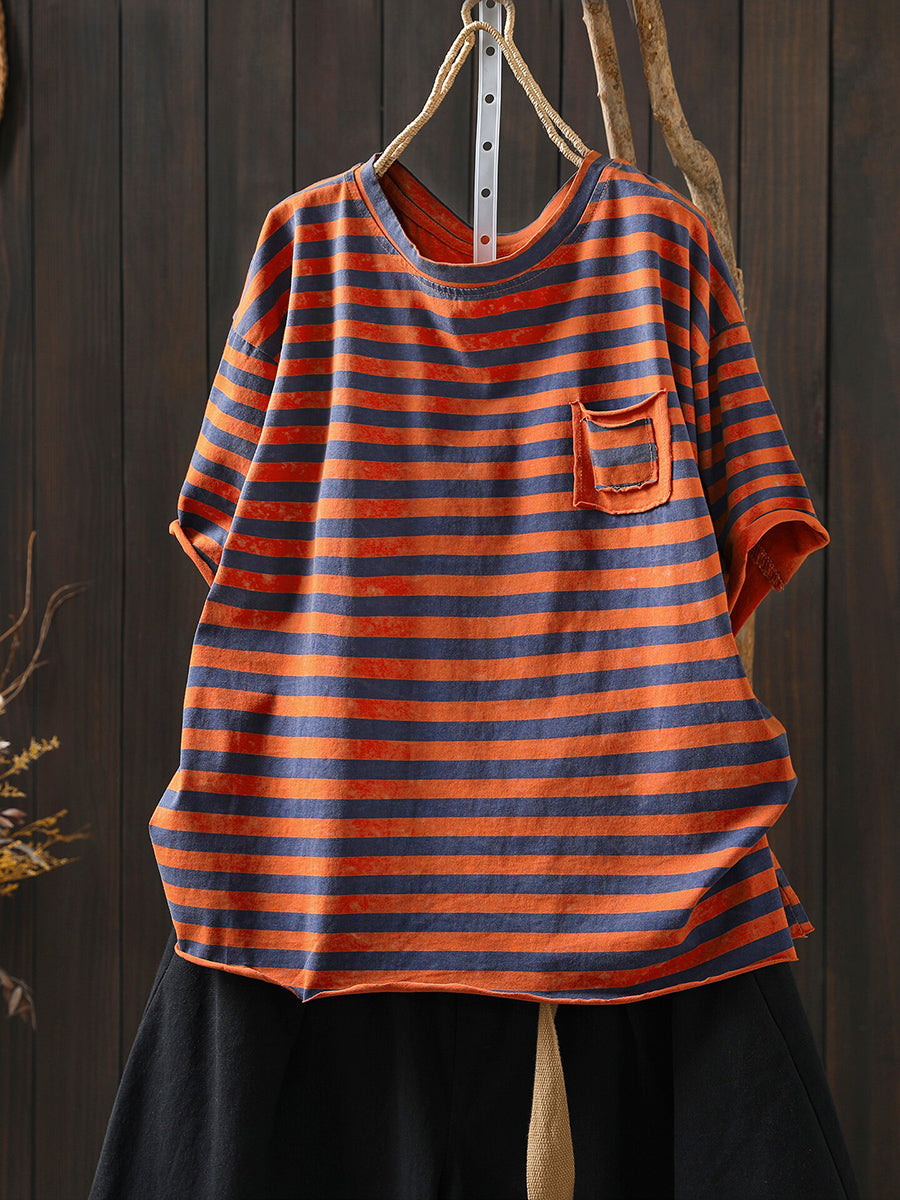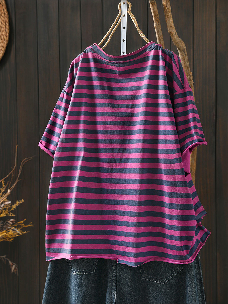 Dámské letní ležérní pruhované tričko s výstřihem do O-neck