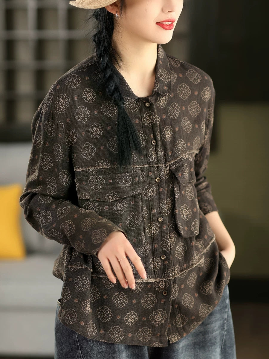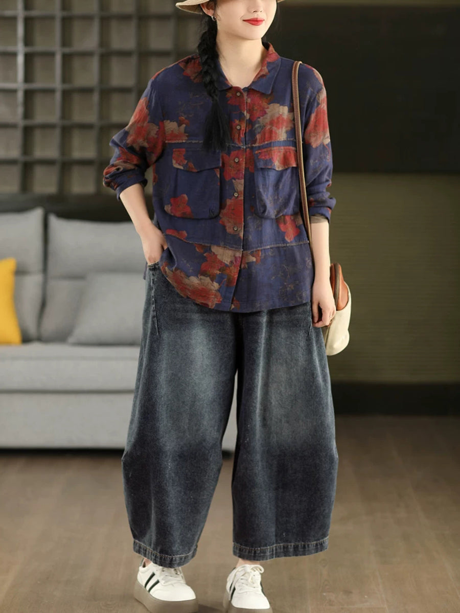 Dámská letní košile s květinovým odkládacím límcem, 100% bavlna