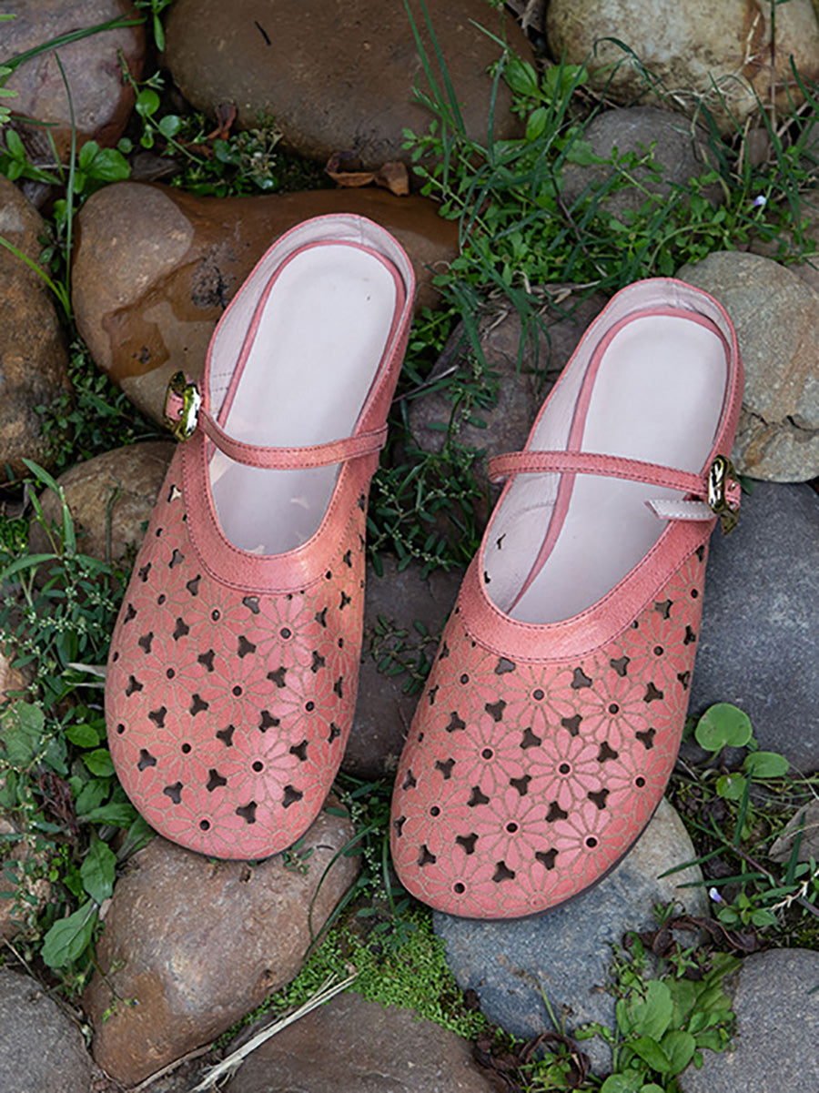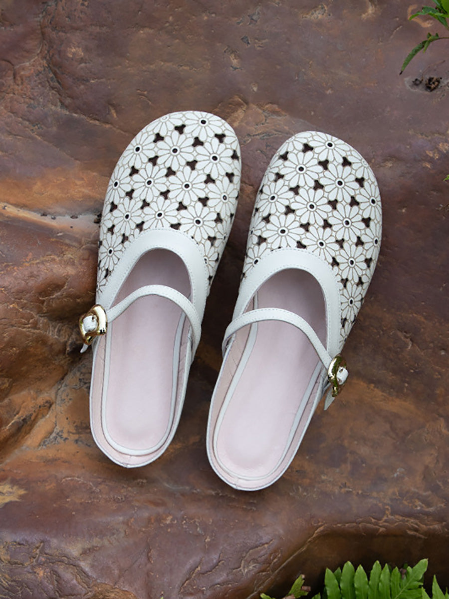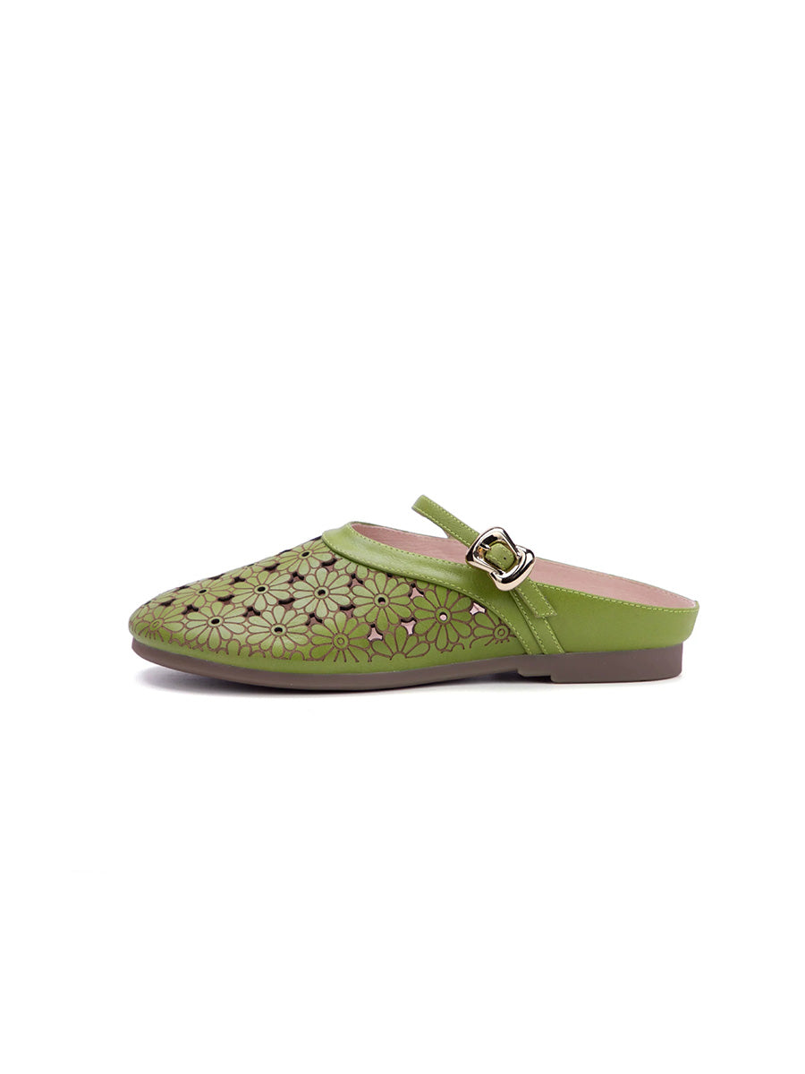 Dámské letní pantofle z pravé kůže s dutými výstřihy