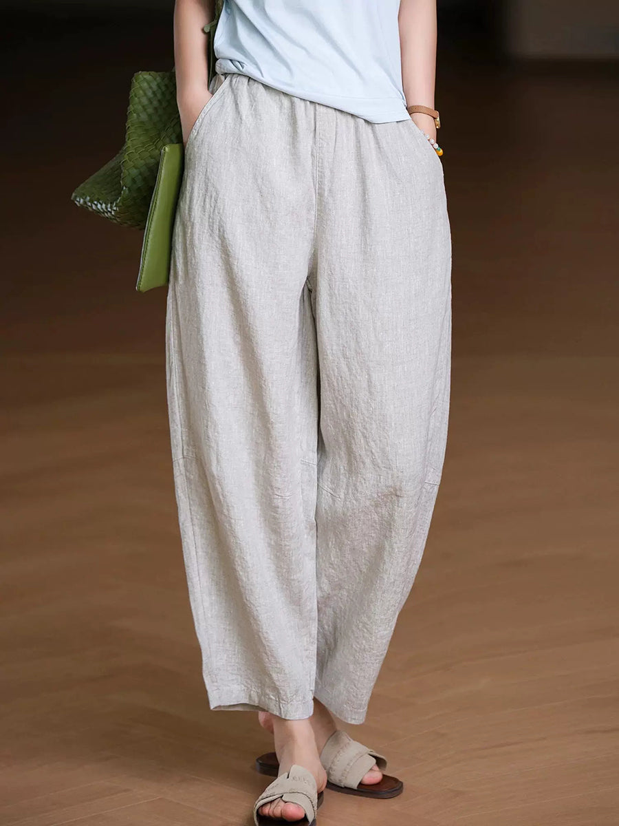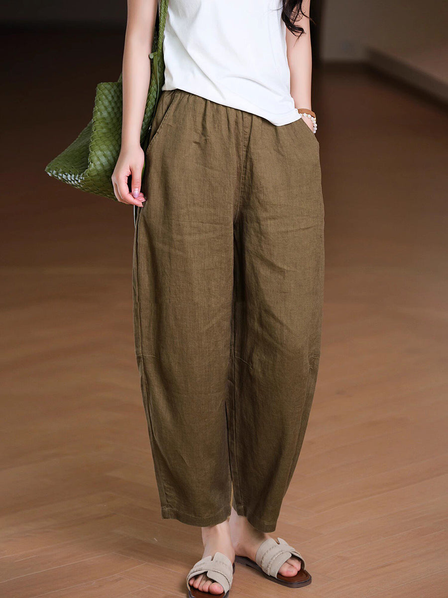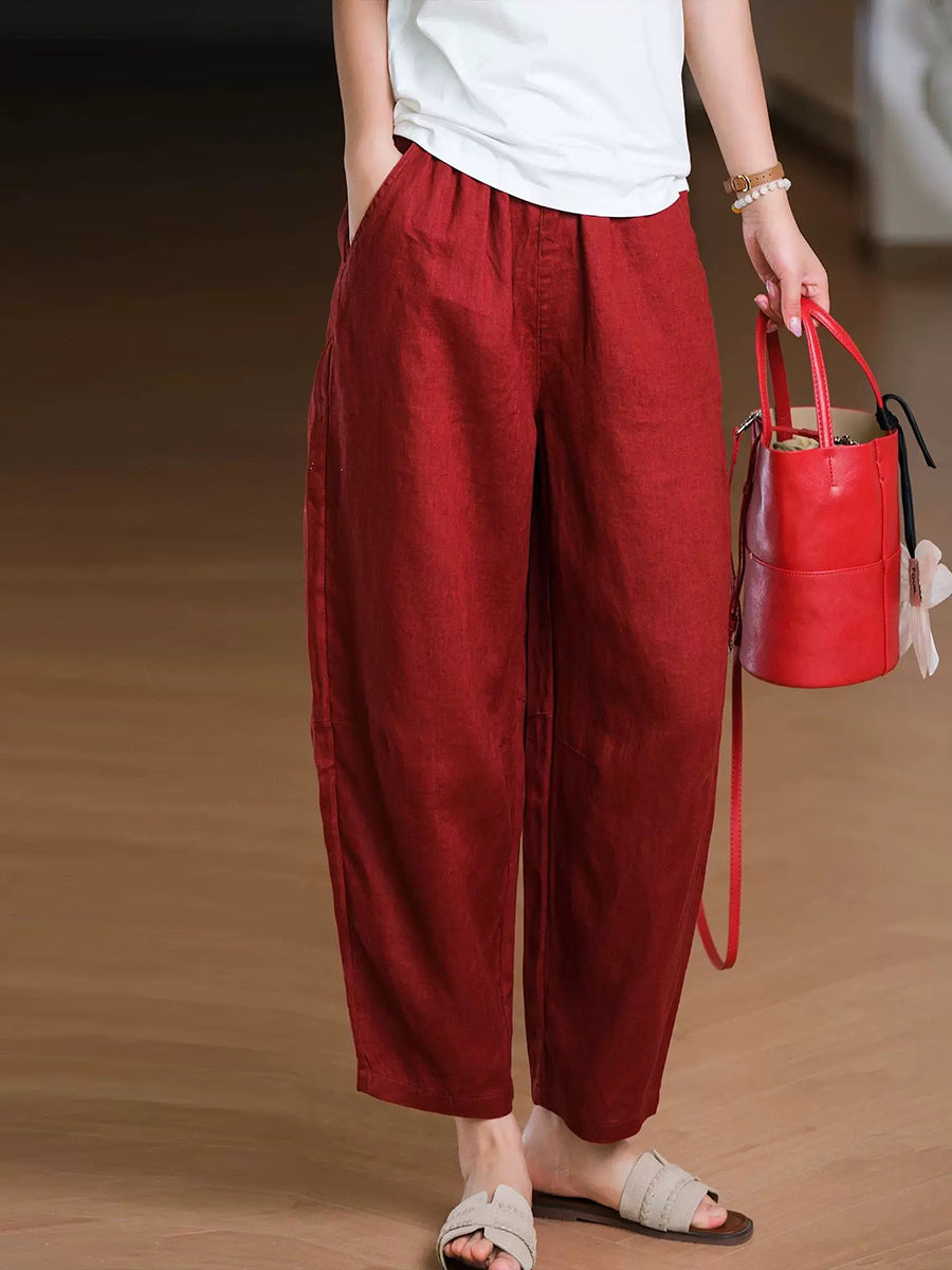 Dámské letní čisté barevné harémové kalhoty ze 100% lnu