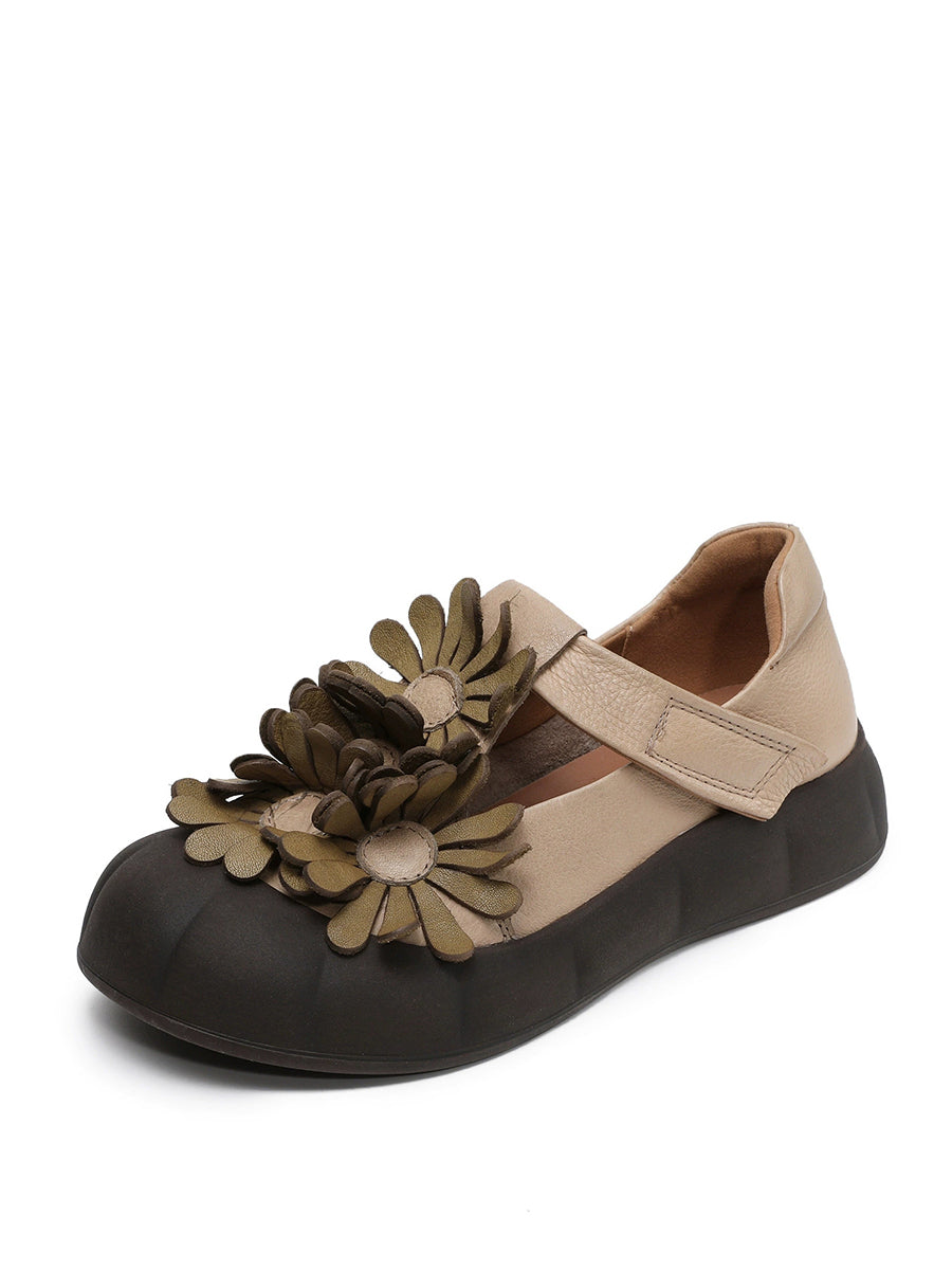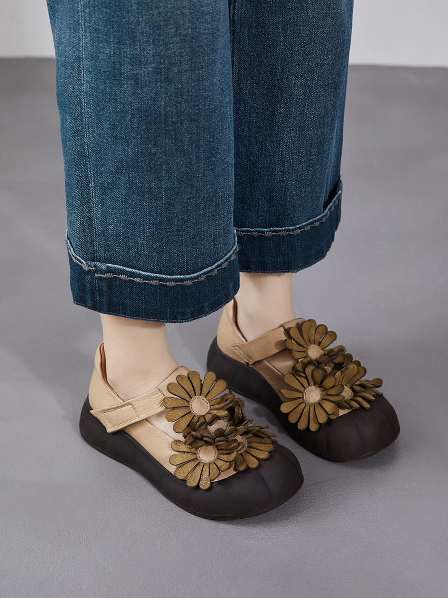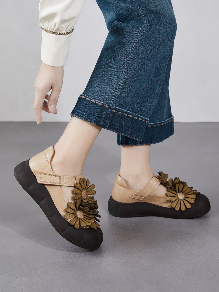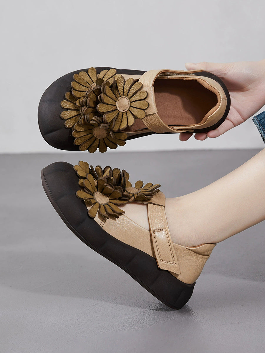 Dámské letní retro boty z pravé kůže s květinovým vzorem