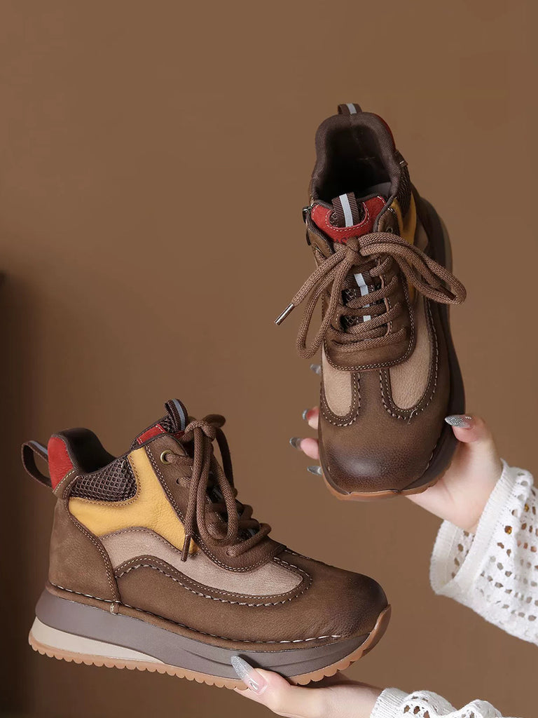 Dámské vintage kožené boty na vysokém podpatku