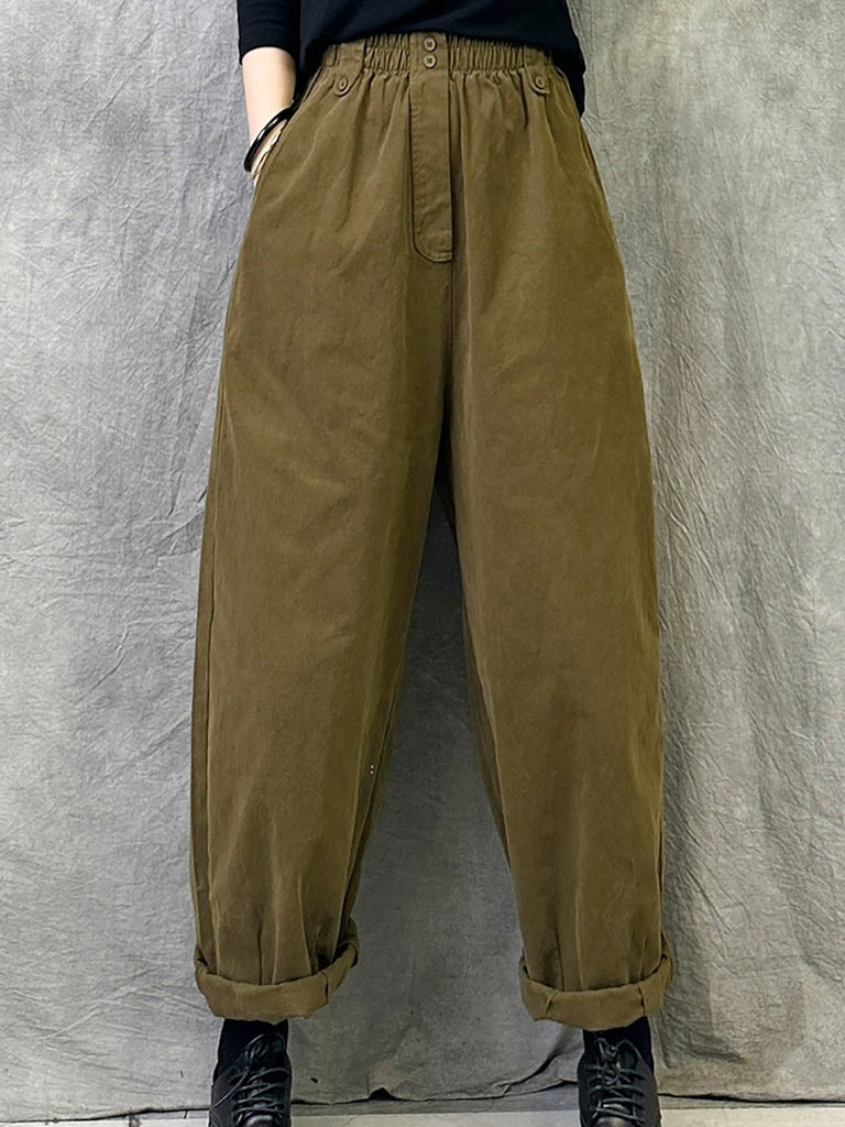 Dámské zimní ležérní čisté barvy bavlněné rovné kalhoty