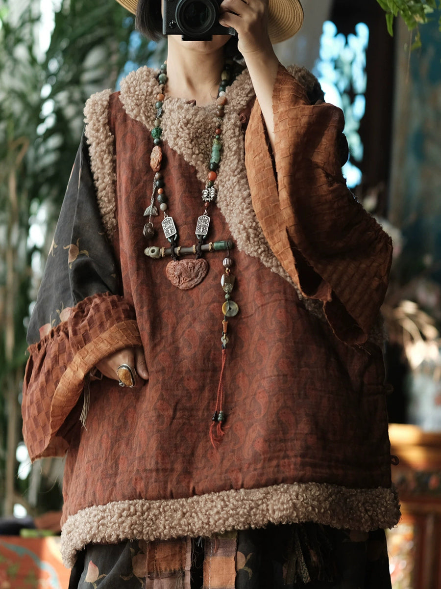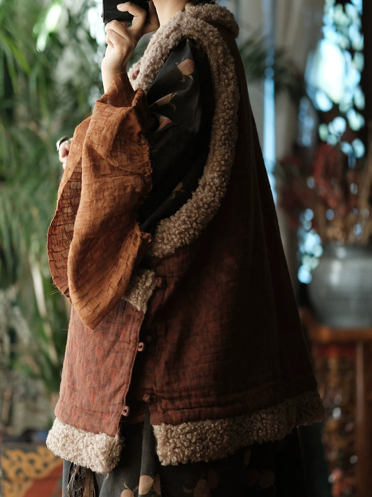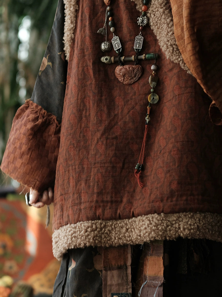 Dámská zimní vintage fleecová vesta s výstřihem do O-neck