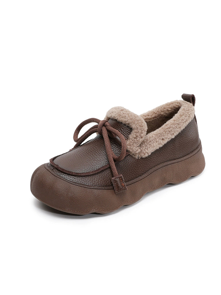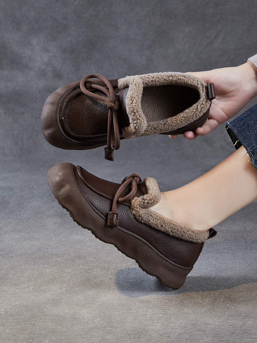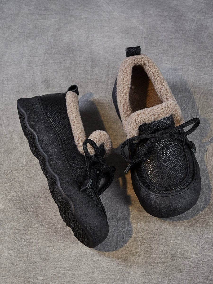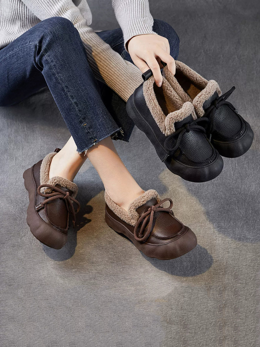 Dámské zimní vintage kožené boty s fleecovou podšívkou