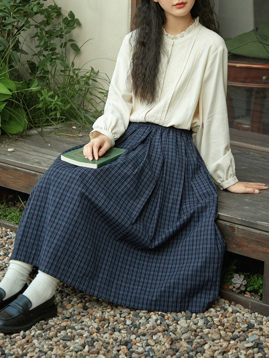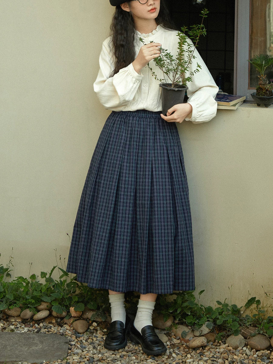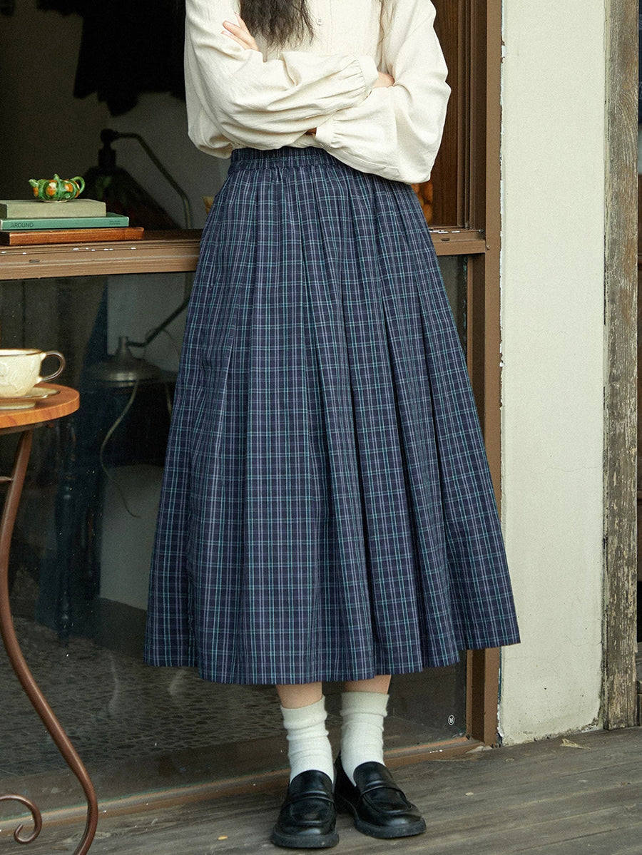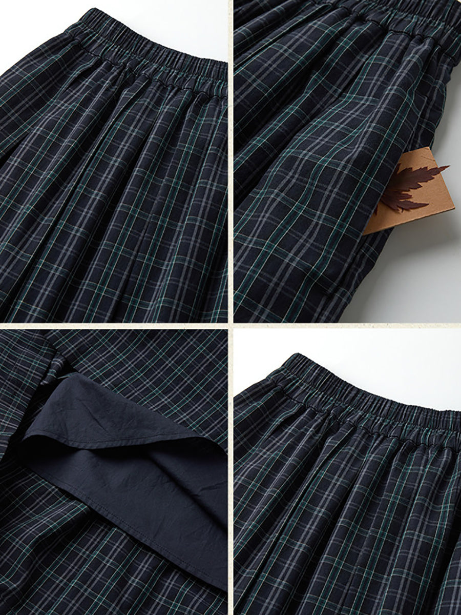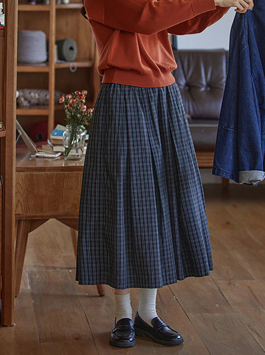 Dámská zimní vintage kostkovaná skládaná sukně ve tvaru A