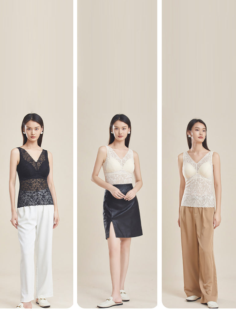 Ženy Jarní Bezešvé Krajky S Prsní Vycpávky Základny