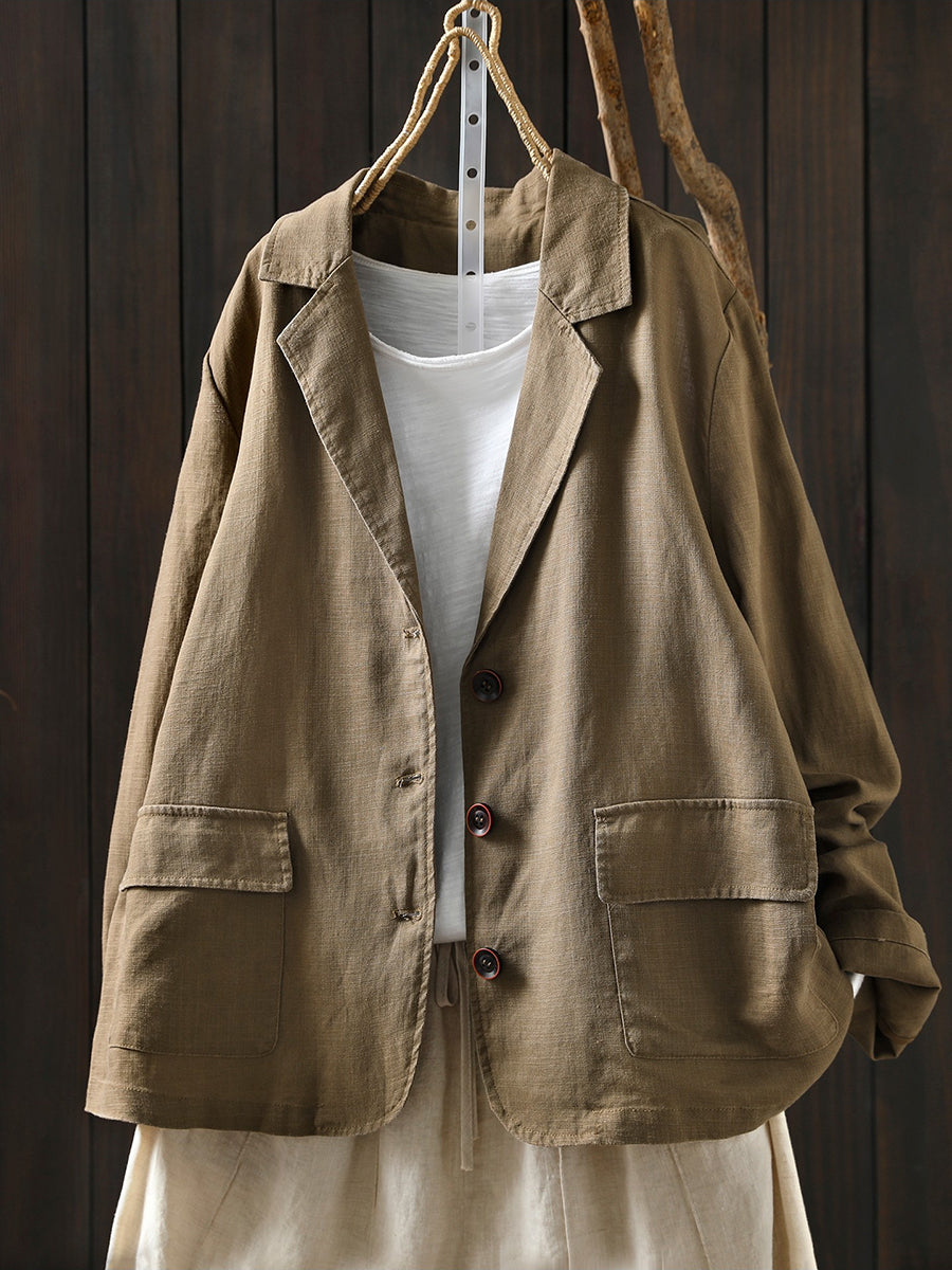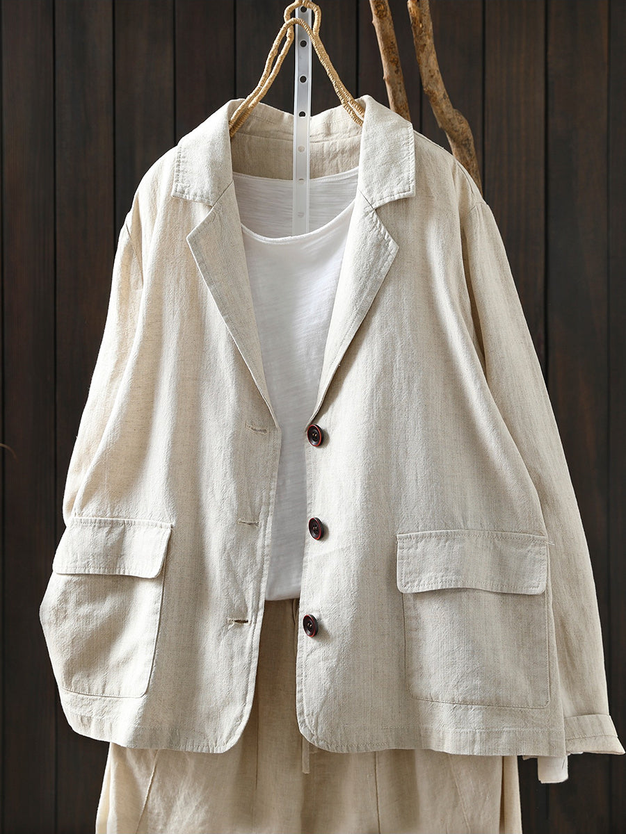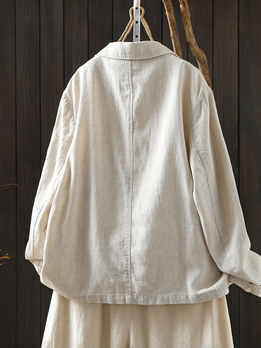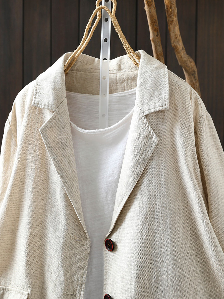 Kvinder Forår Retro 100% Hør Frakke med Nedhængt Krave