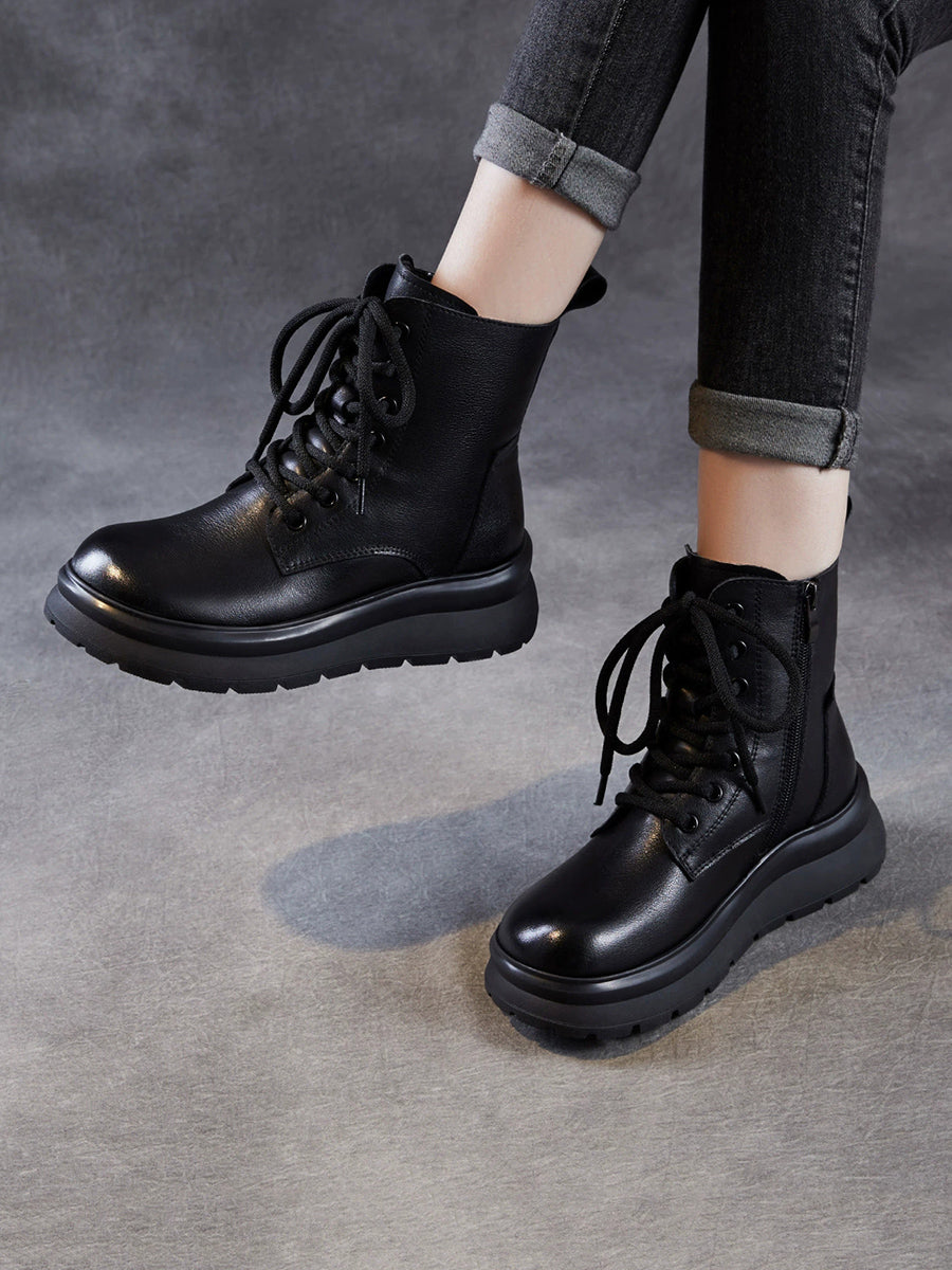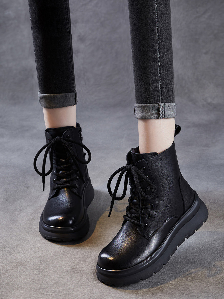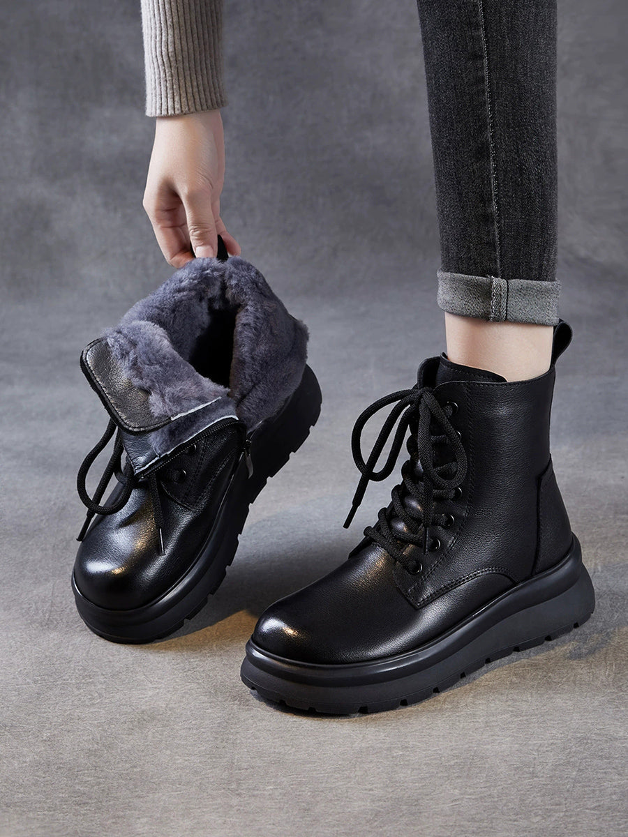 Kvinder Vinter Casual Ægte Læder Fleeceforede Støvler