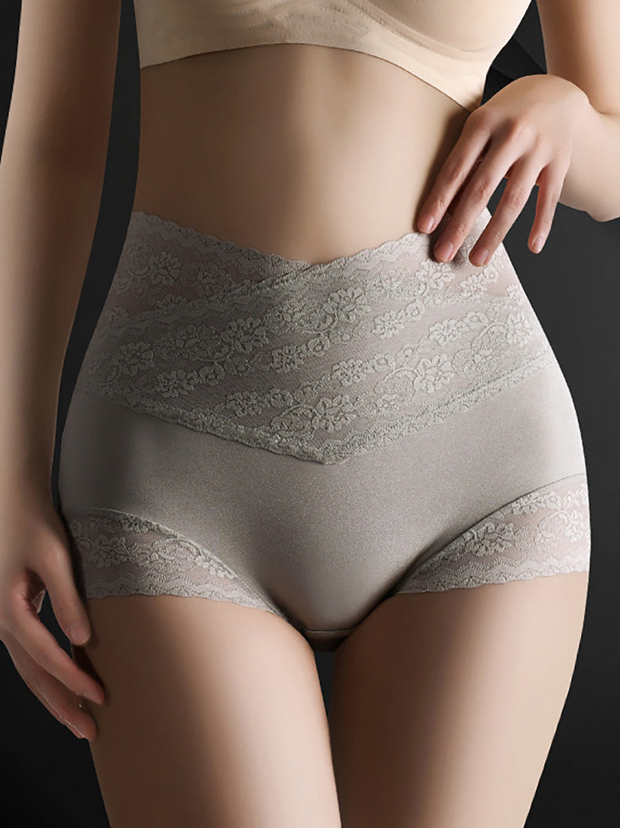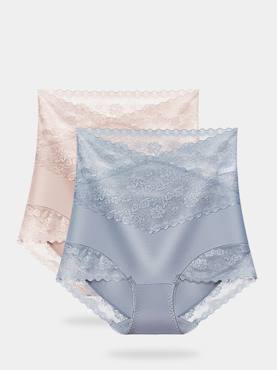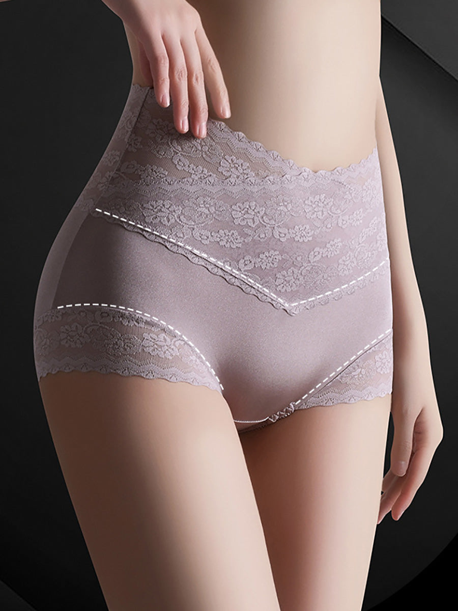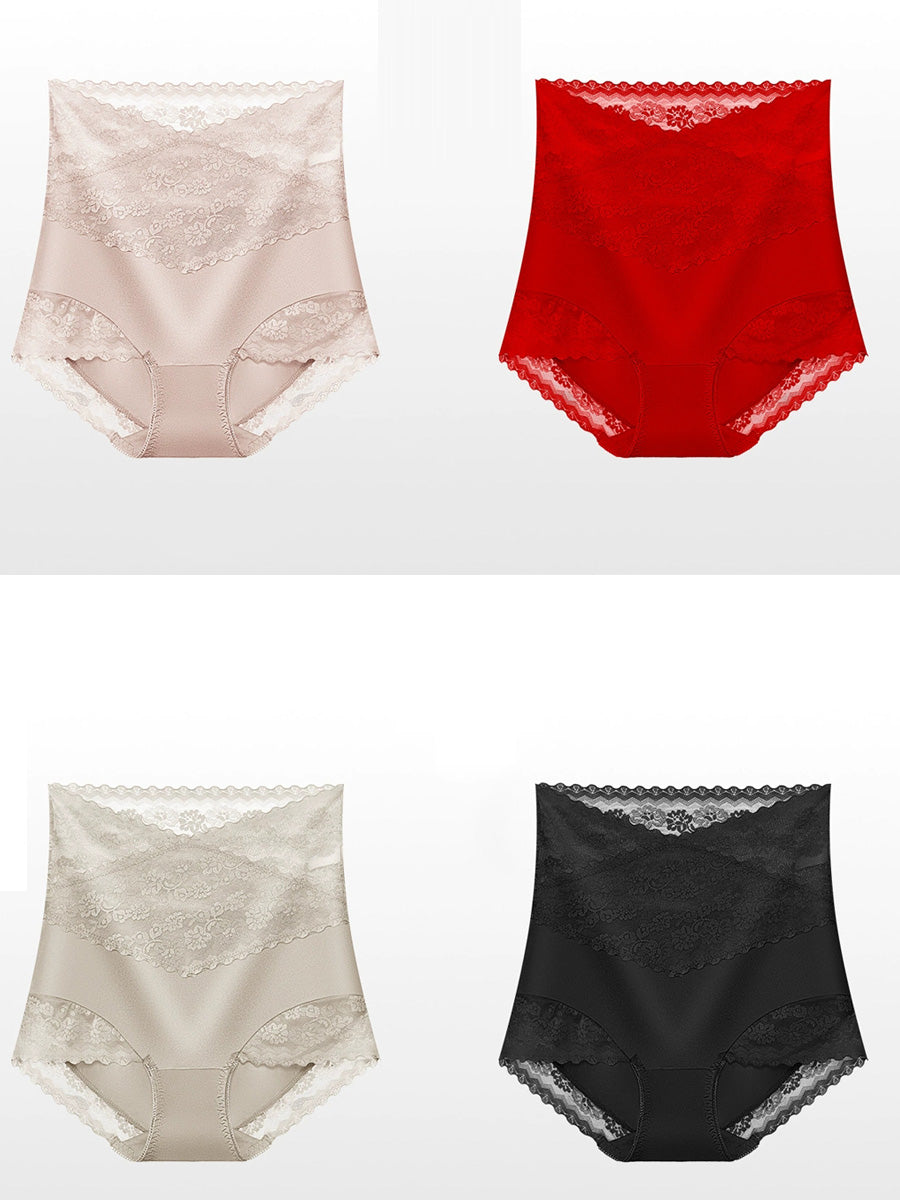 4 stk. højtaljede undertøj til kvinder med kunstnerisk blondeprint